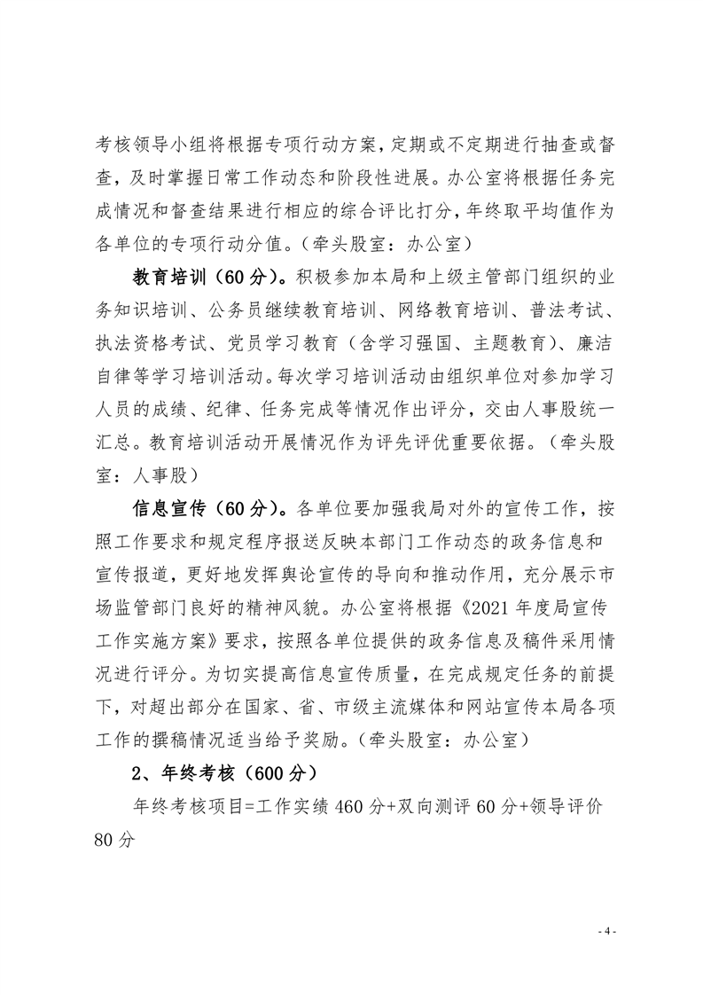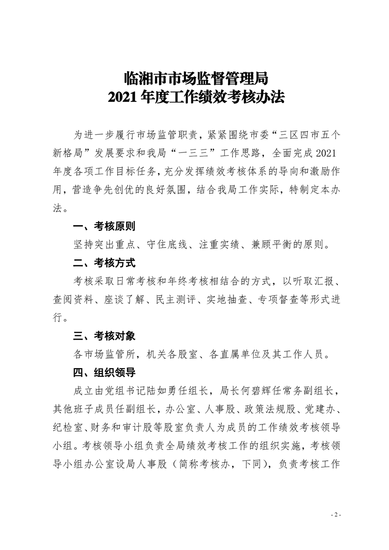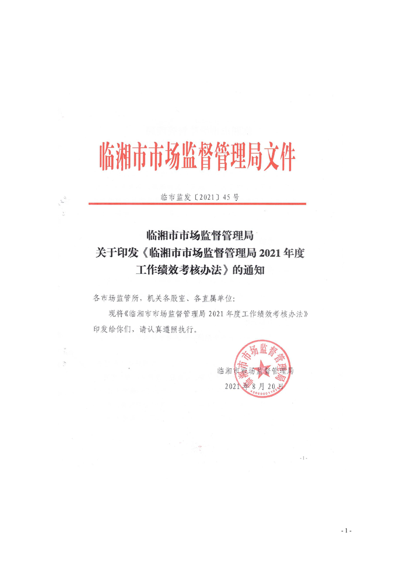 临湘市市场监督管理局关于印发《临湘市市场监督管理局2021年度工作绩效考核方法》的通知