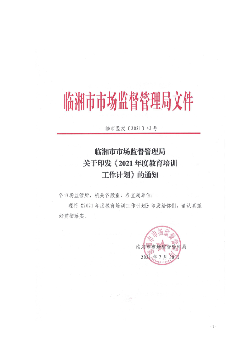 临湘市市场监督管理局关于印发《2021年度教育培训工作计划》的通知