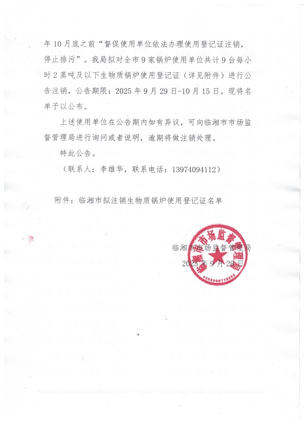 关于注销淘汰锅炉使用登记证的公告(第四批)