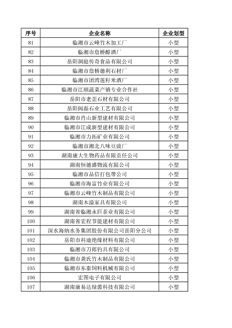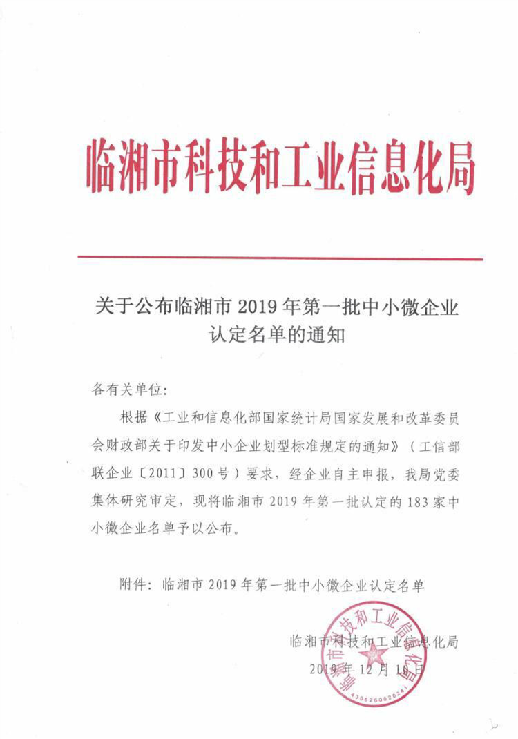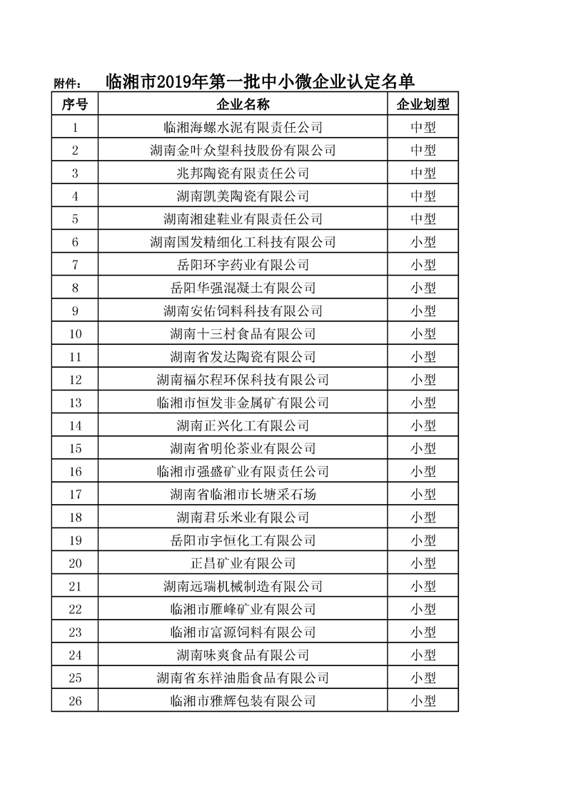 关于公布临湘市2019年第一批中小微企业认定名单的通知