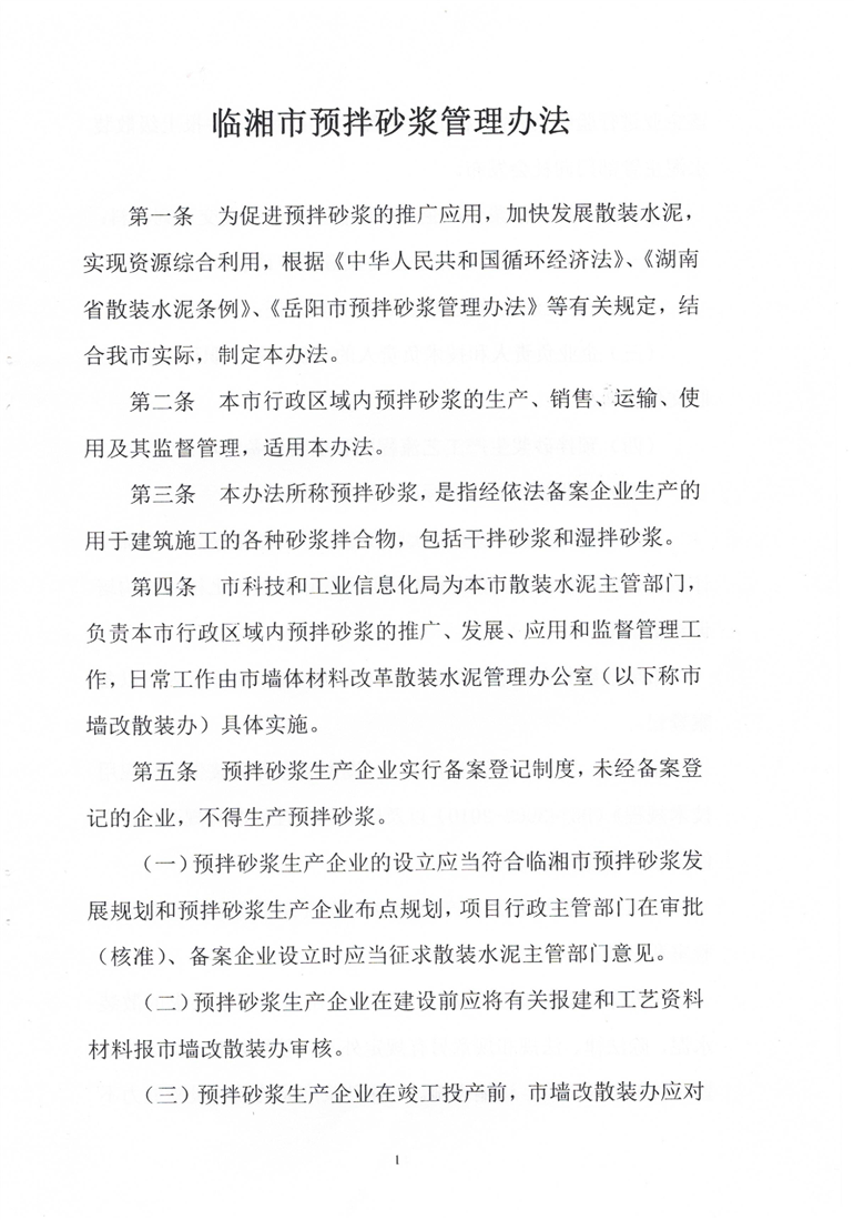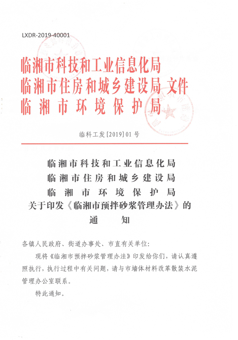关于印发《临湘市预拌砂浆管理办法》的通知