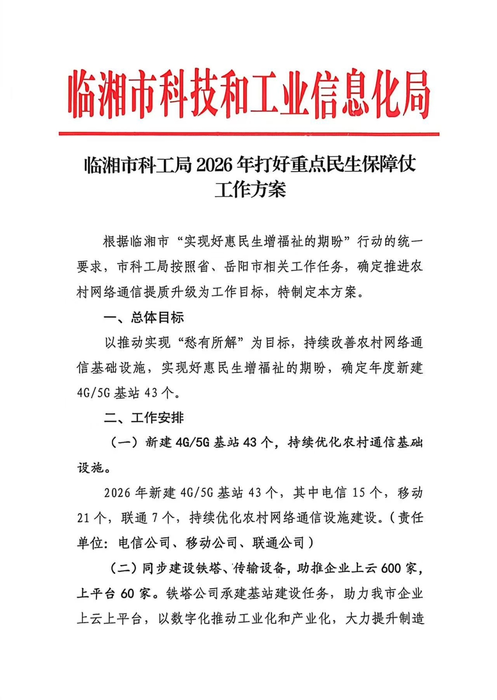 临湘市科工局2026年打好重点民生保障仗工作方案