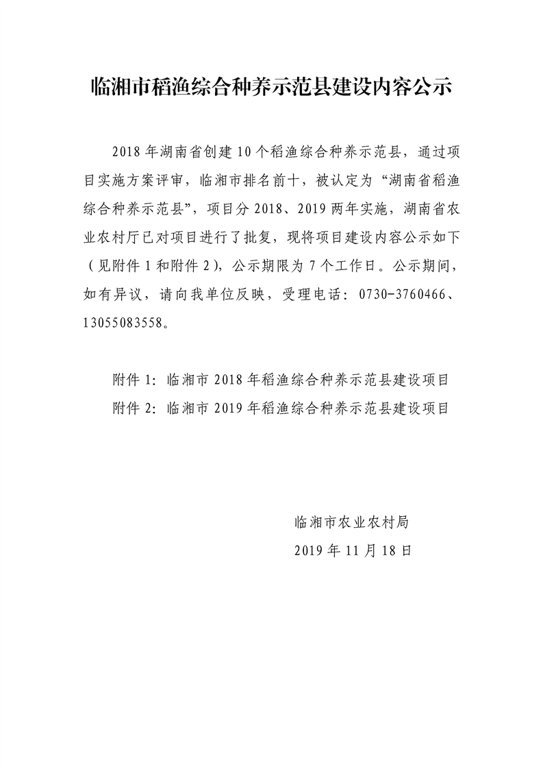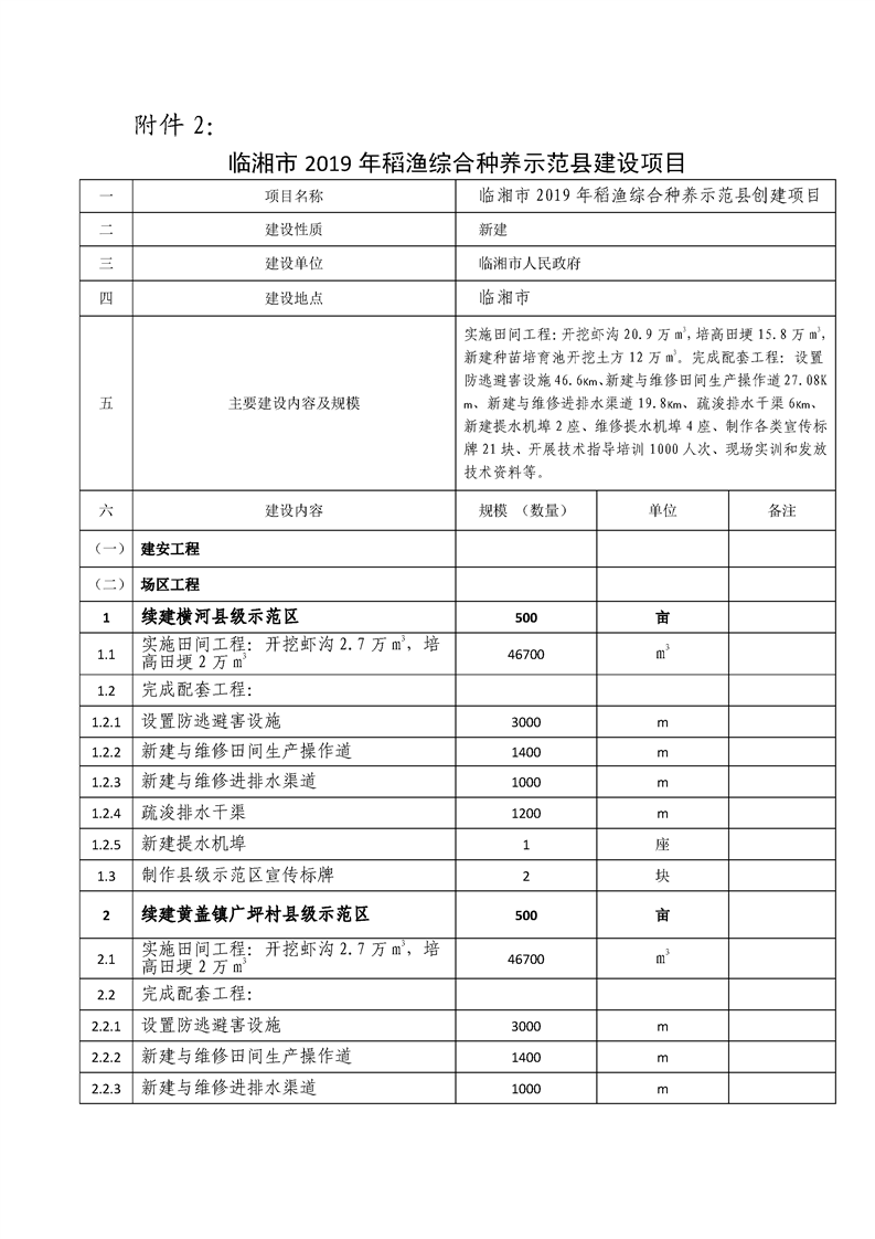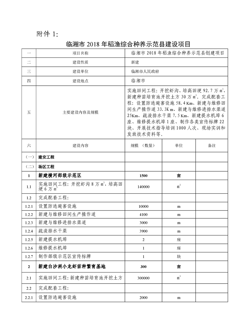 临湘市稻渔综合种养示范县建设内容公示