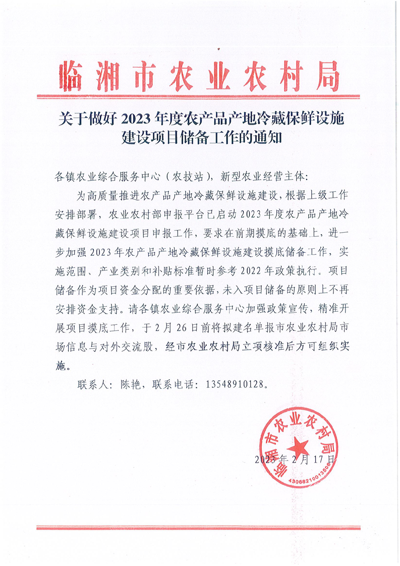 关于做好2023年度农产品产地冷藏保鲜设施建设项目储备工作的通知