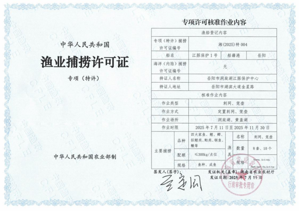 附件∶专项(特许)捕捞证—湘(2025)特002号