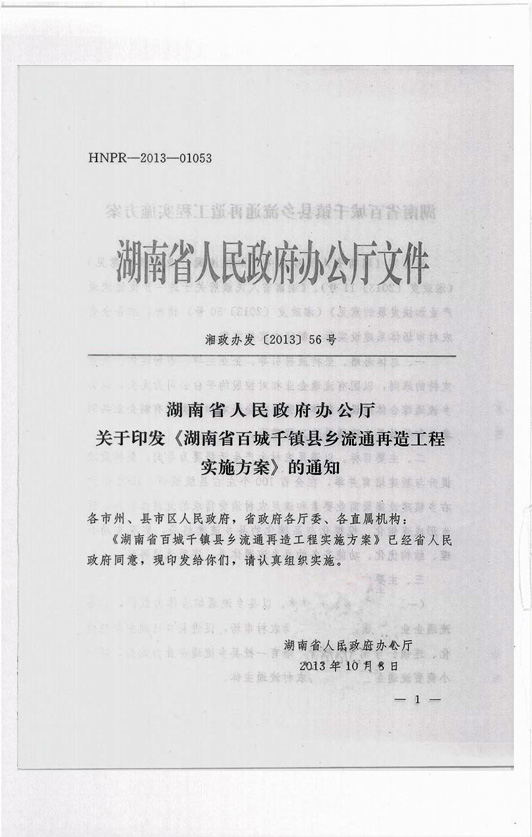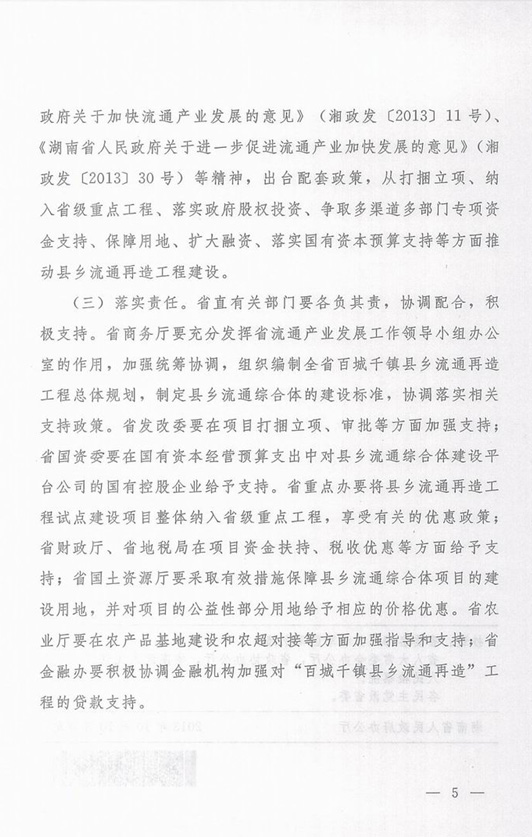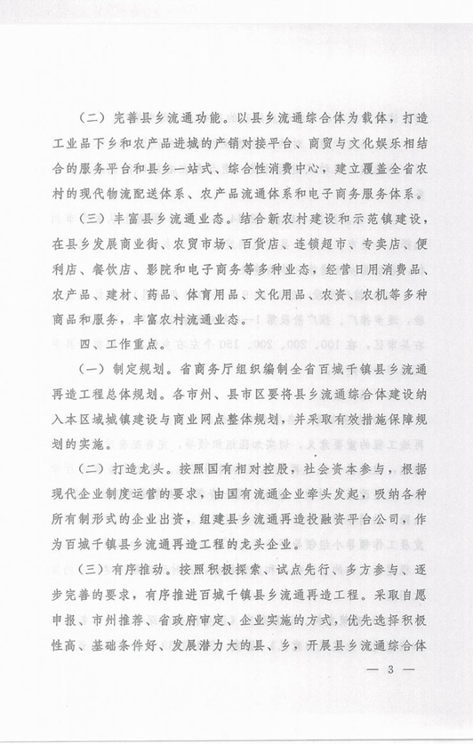 《湖南省百城千镇县乡流通再造工程实施方案》的通知