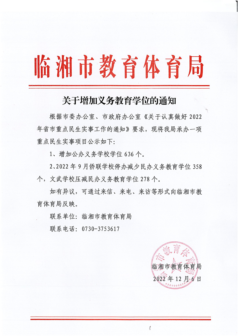 关于增加义务教育学位的通知