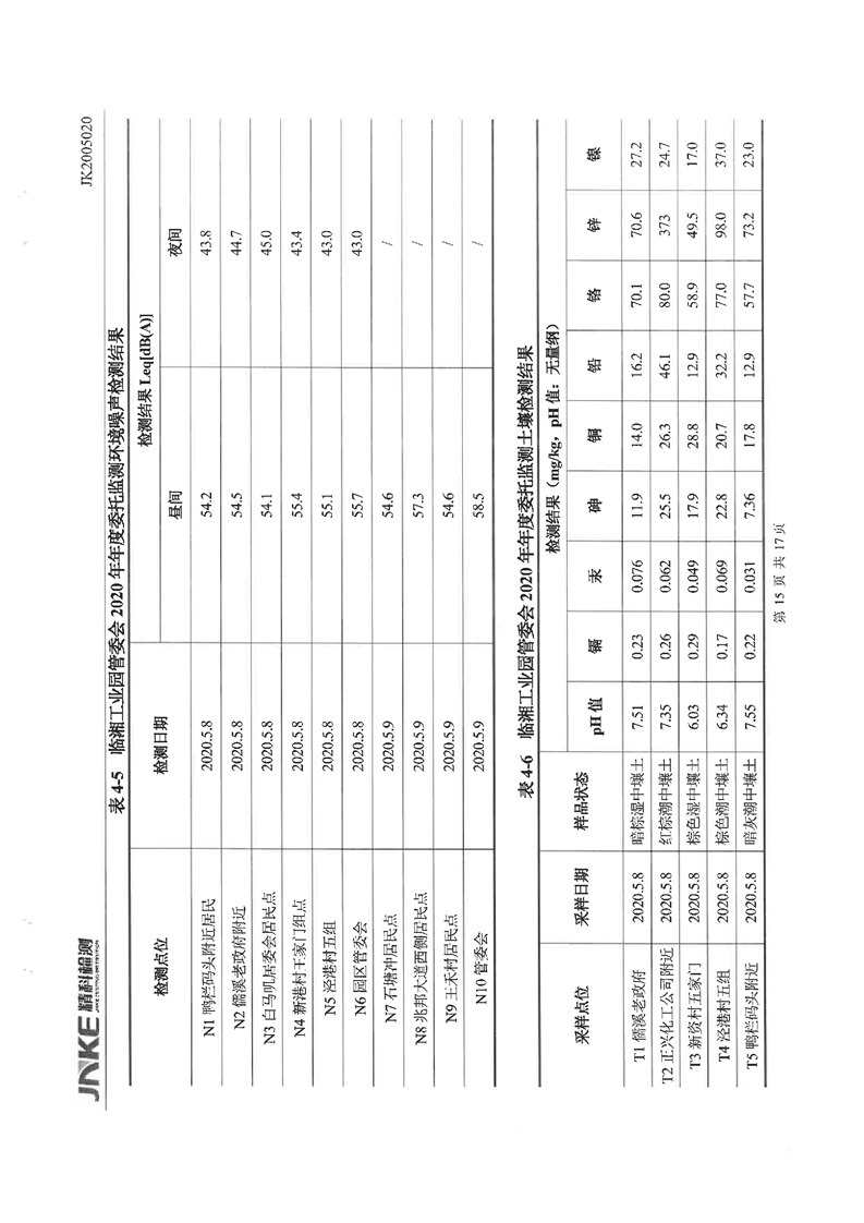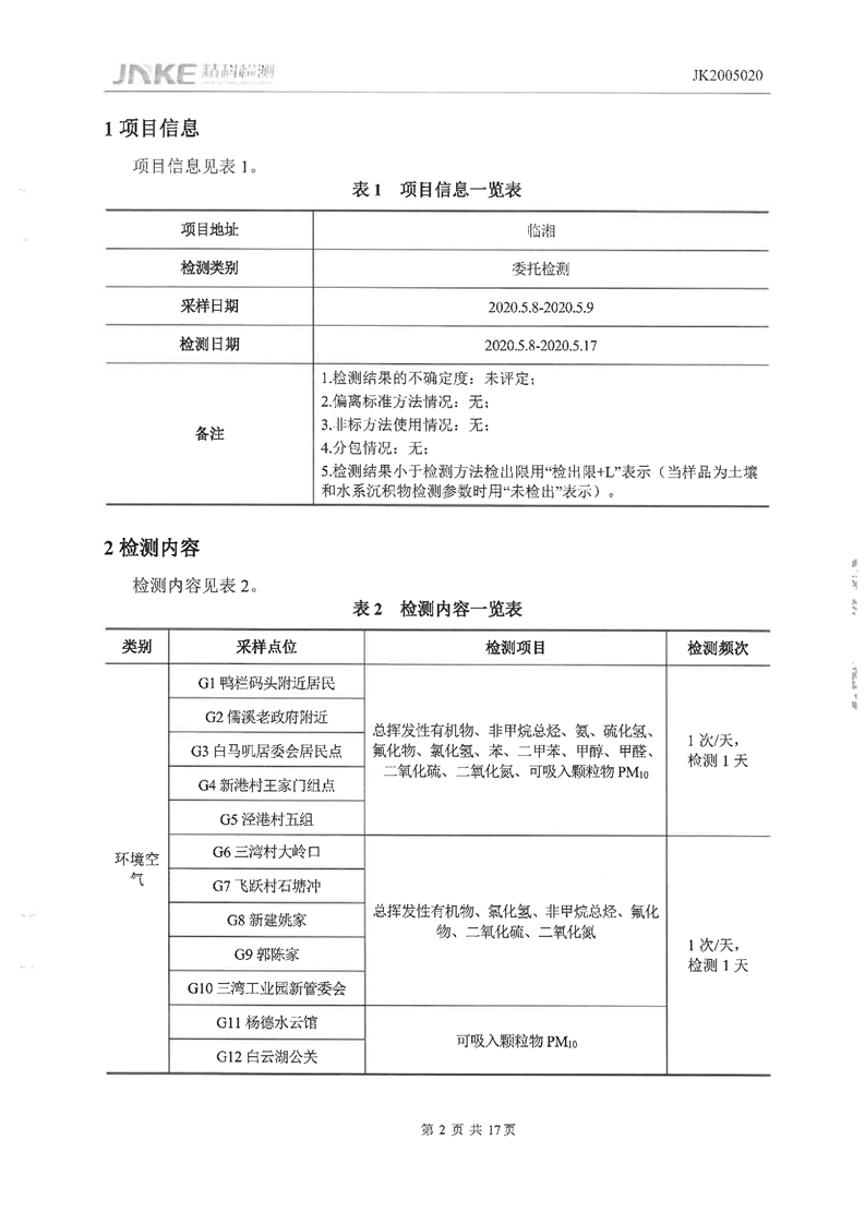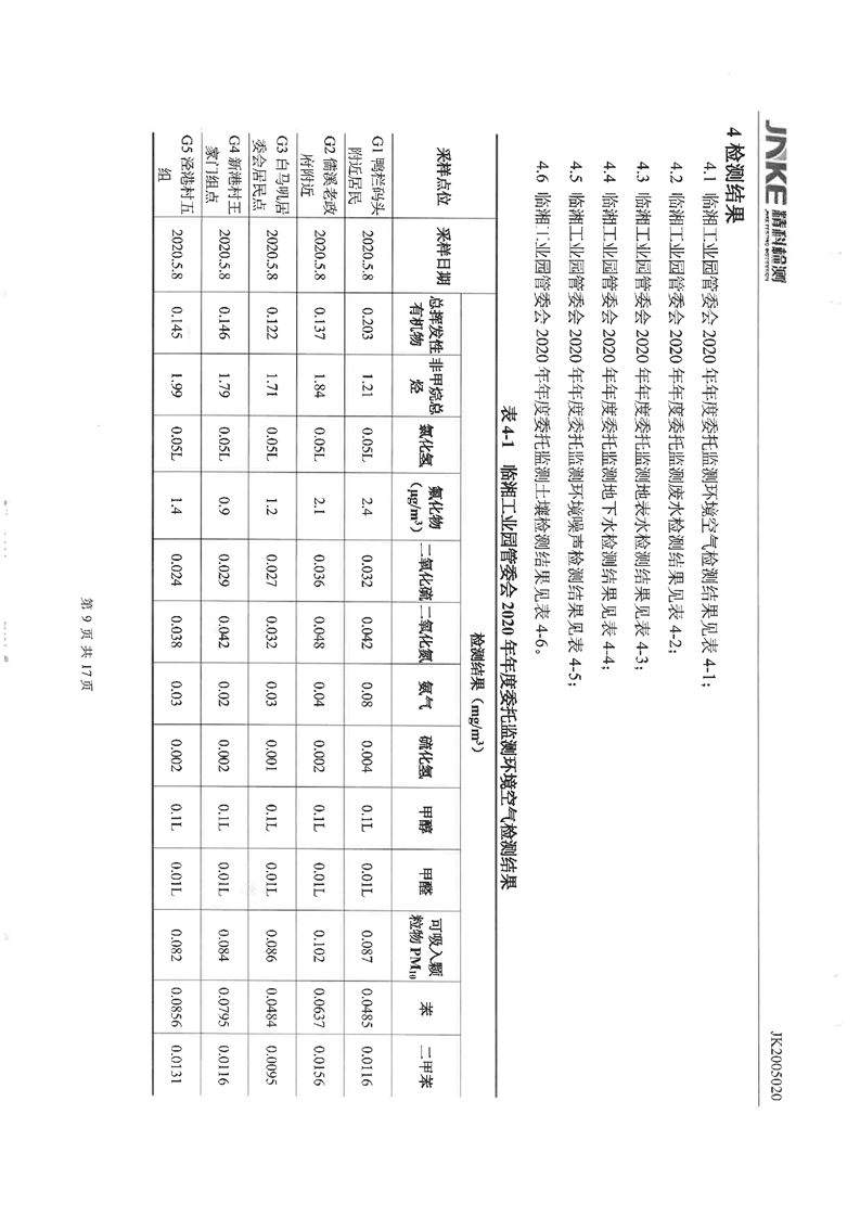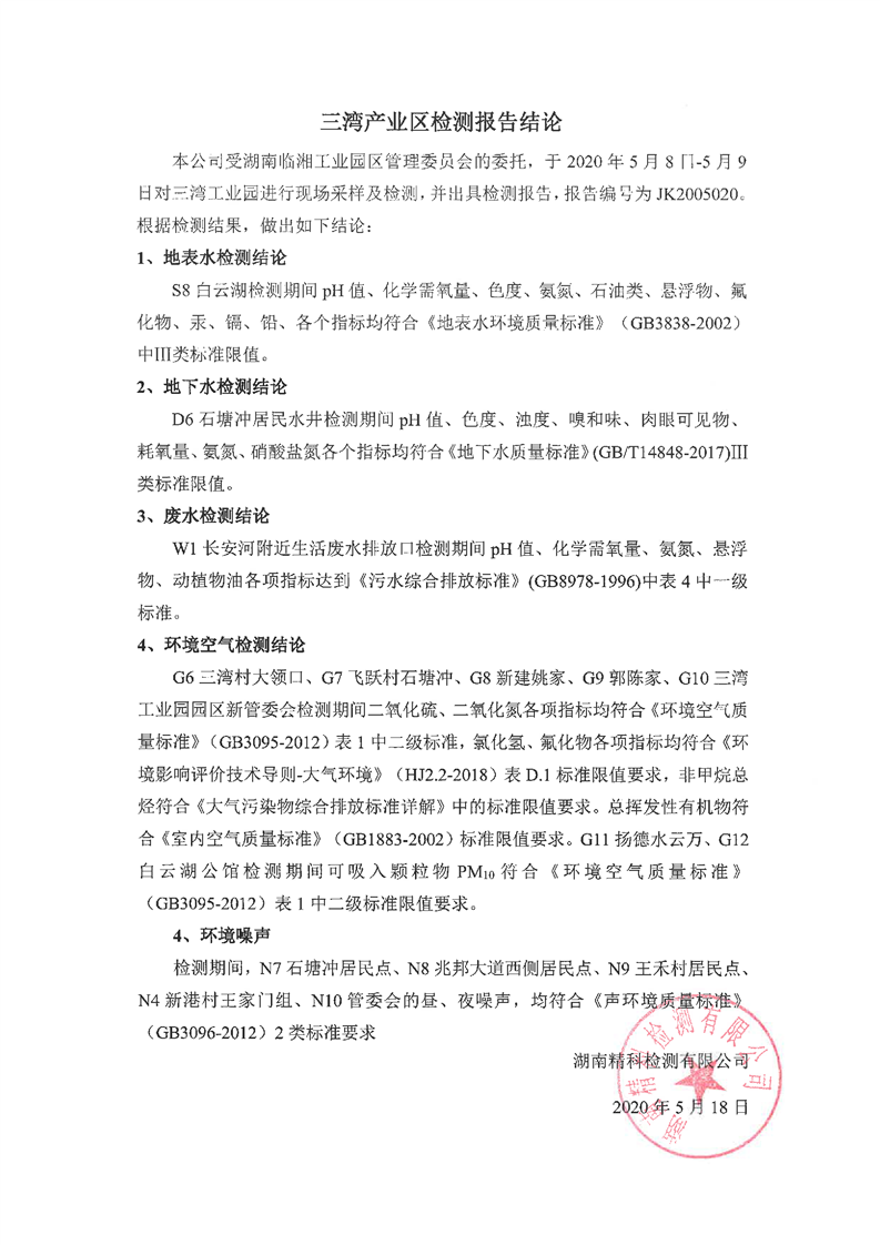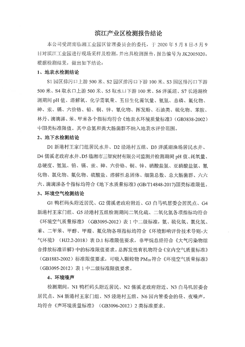 临湘工业园2020年第一季度环境质量检测报告