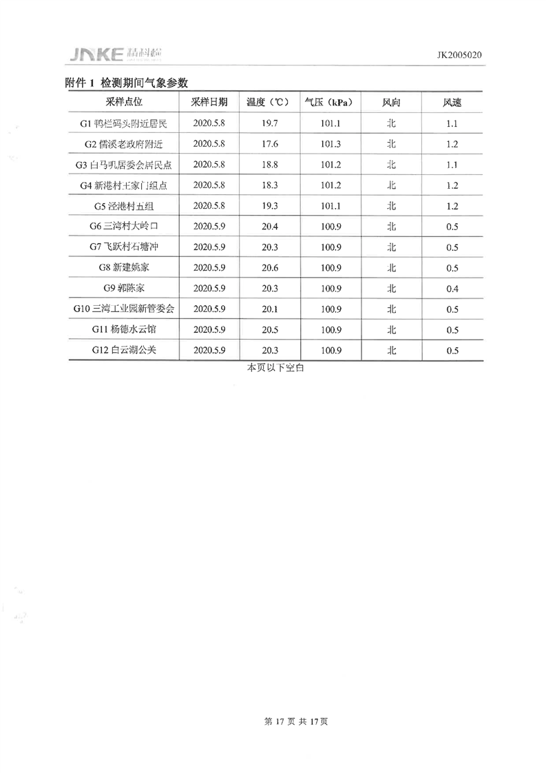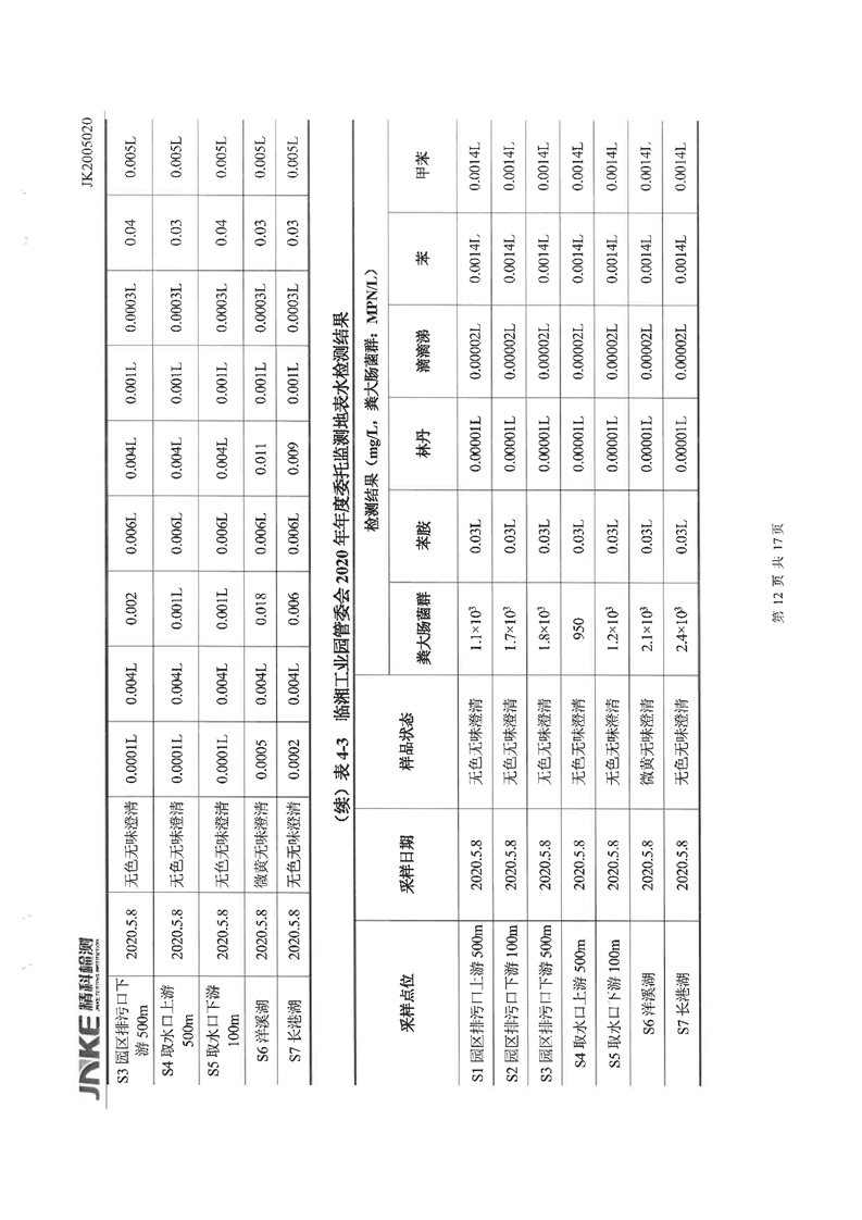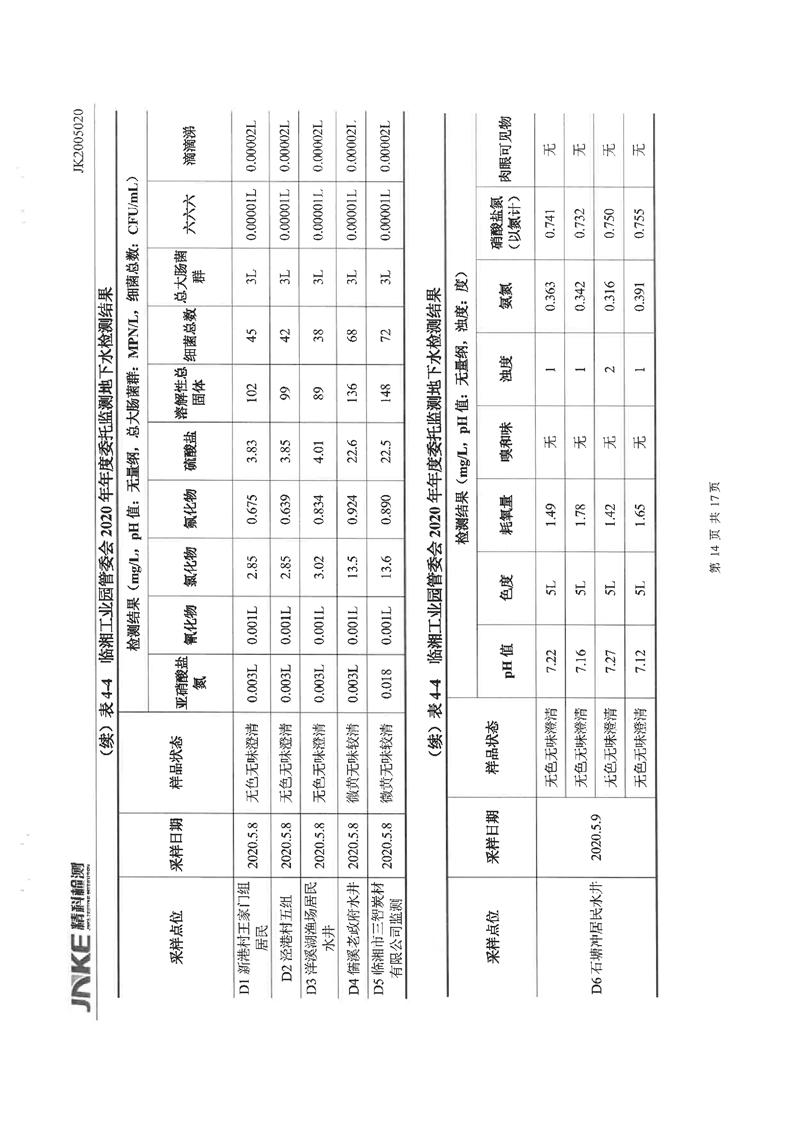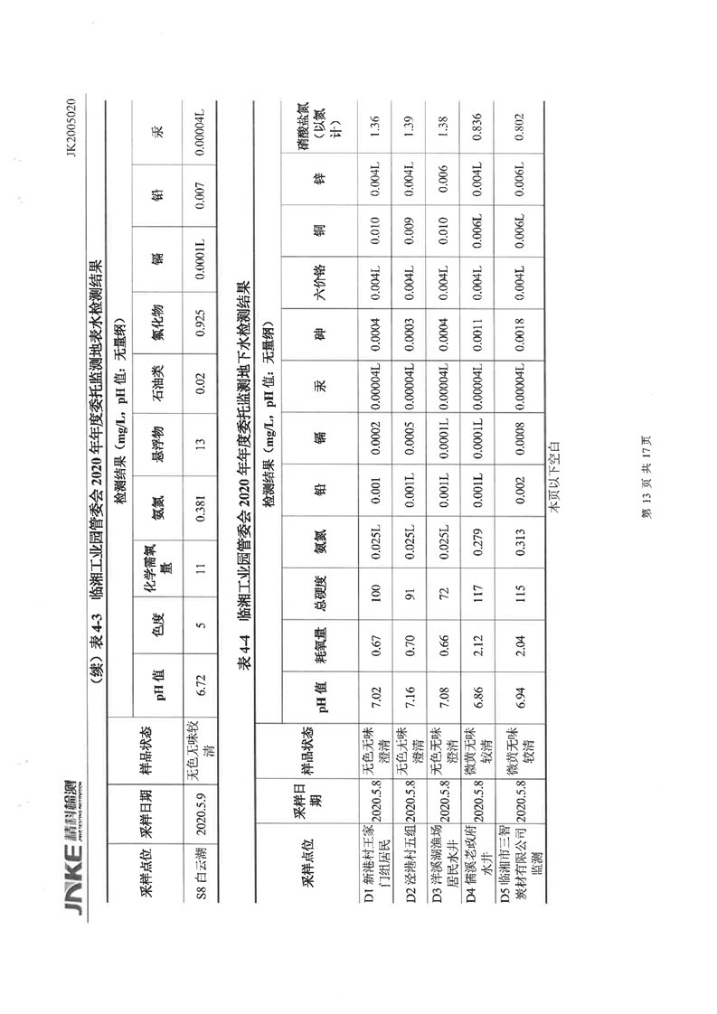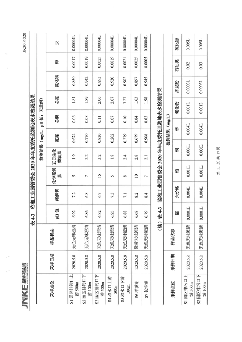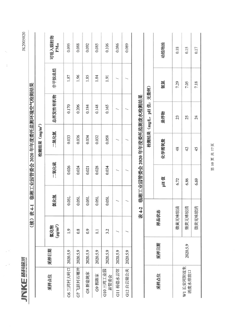 临湘工业园2020年第一季度环境质量检测报告