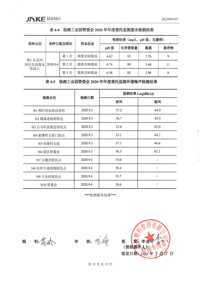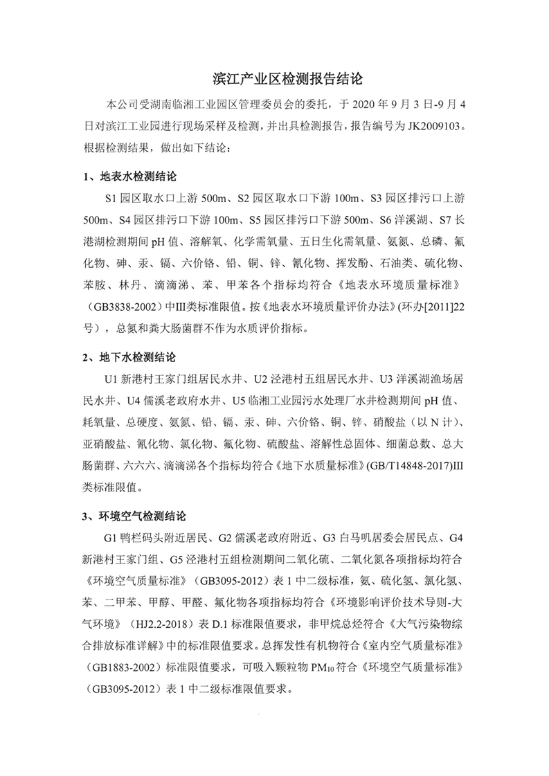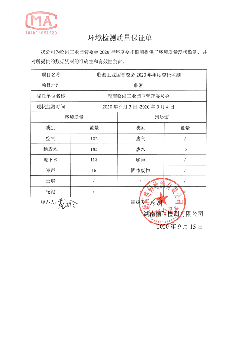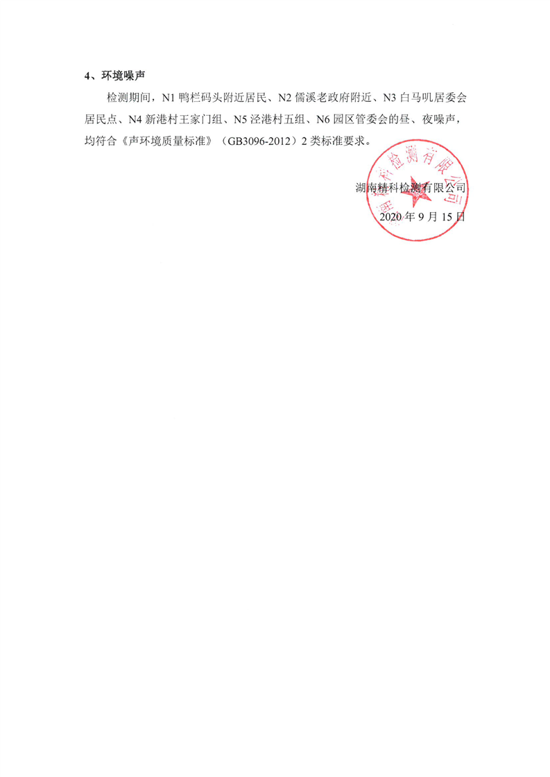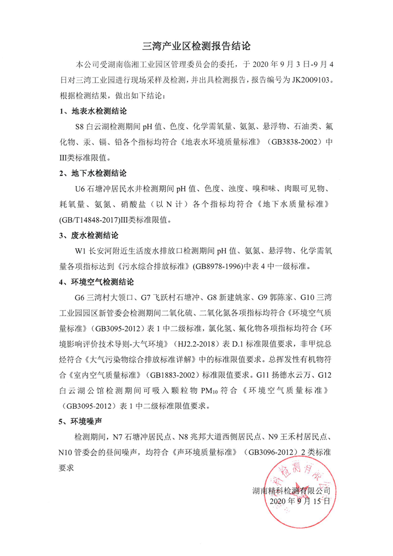 临湘工业园2020年第三季度环境质量检测报告