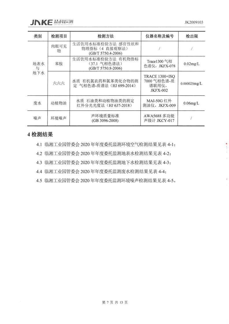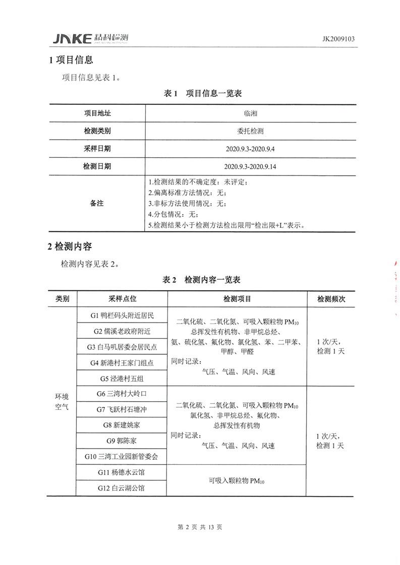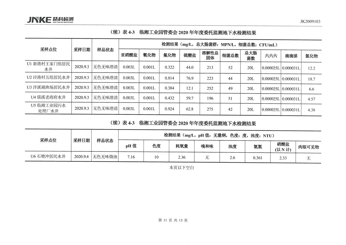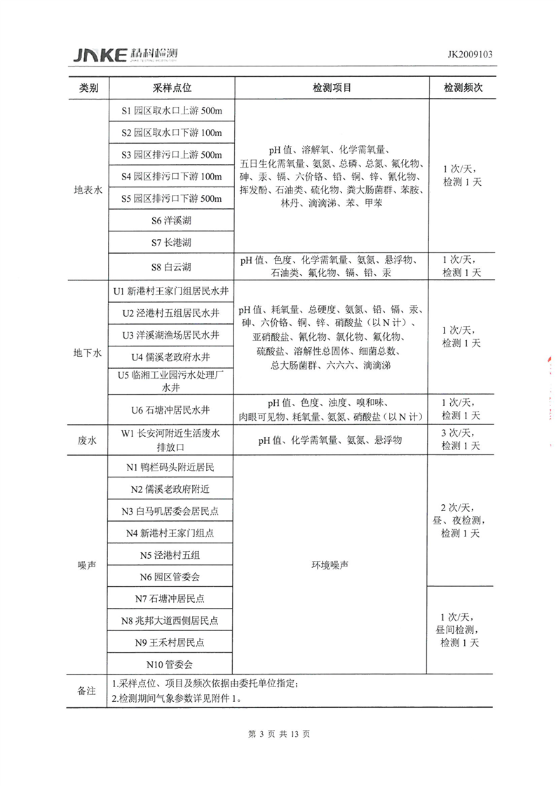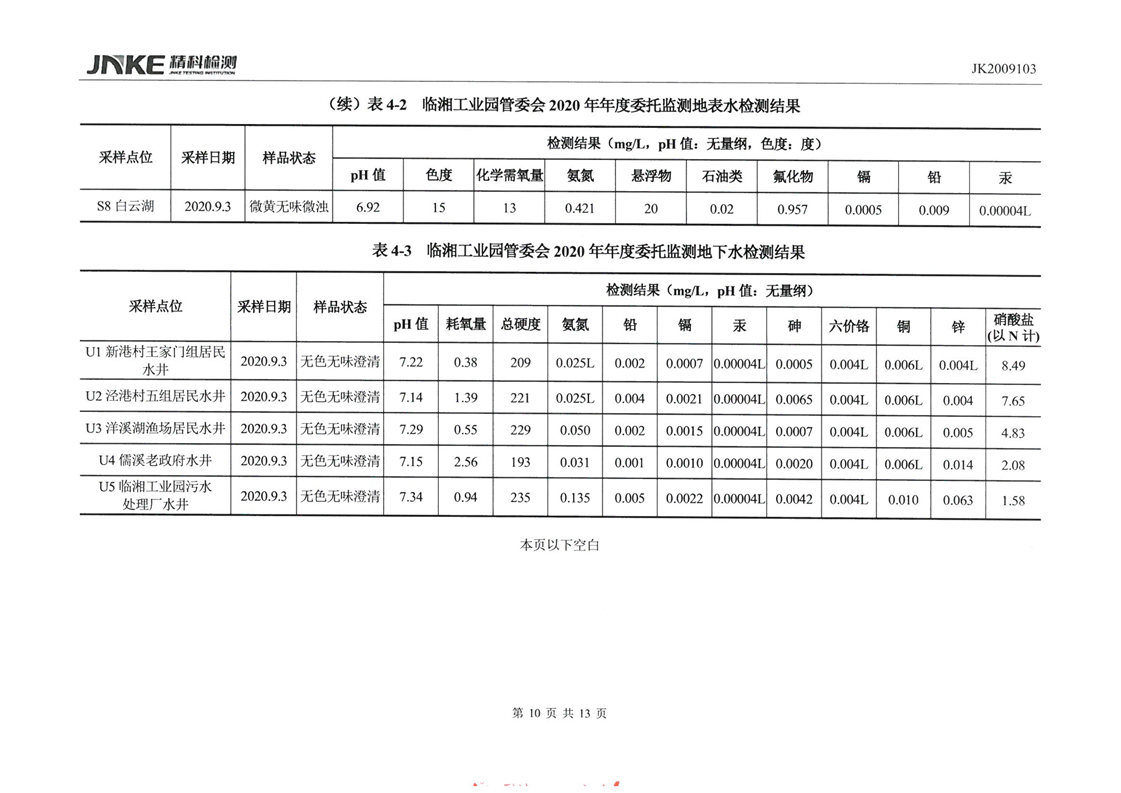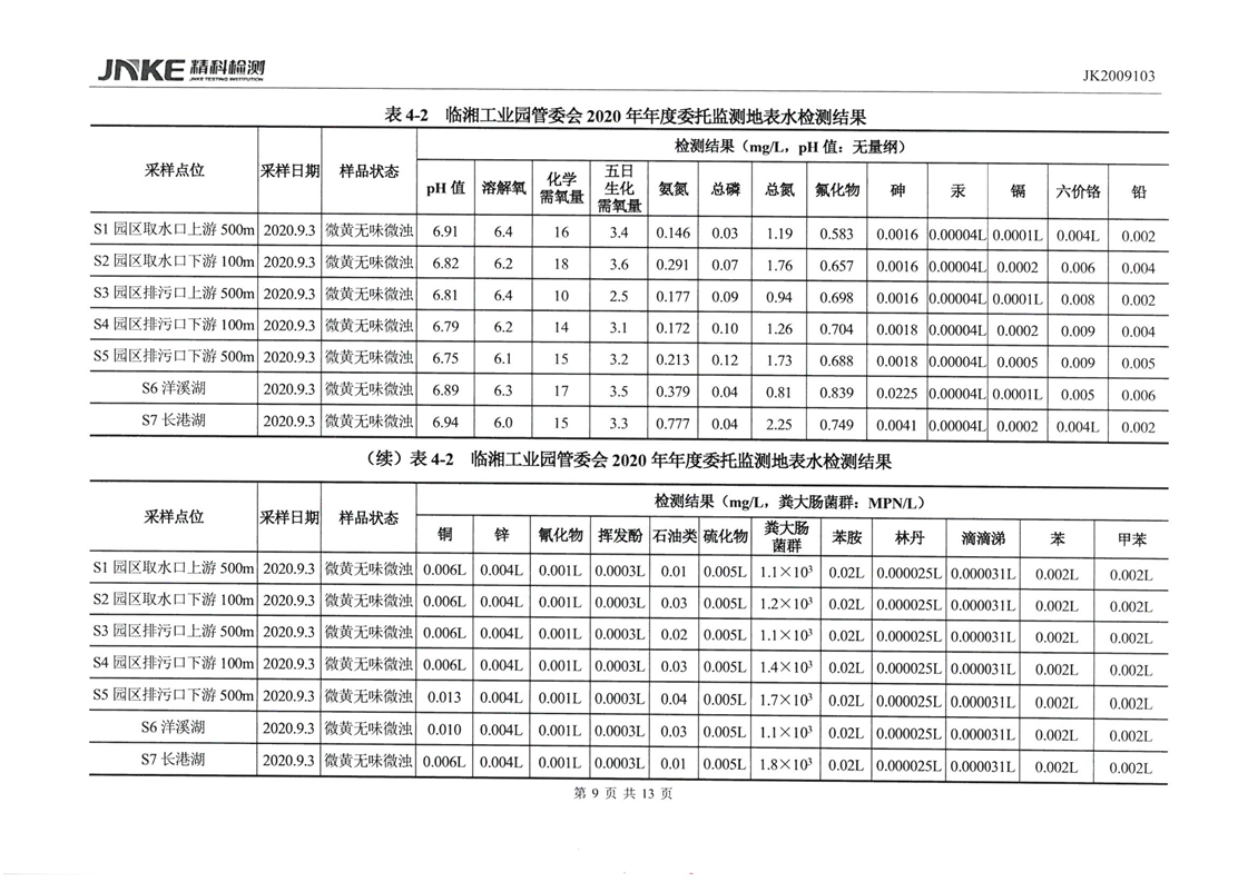 临湘工业园2020年第三季度环境质量检测报告