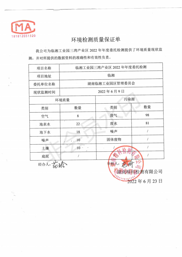 2022三湾 第二季度环境质量报告
