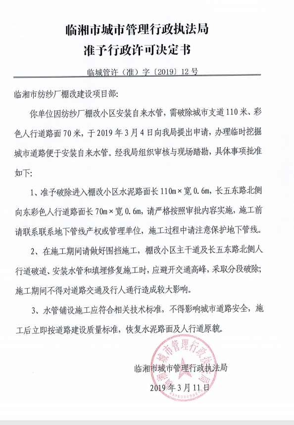 湖南标中建设工程有限公司办理临时挖掘城市道路