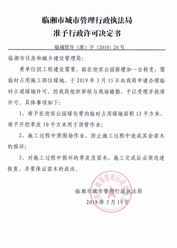 临湘市住房和城乡建设管理局办理临时占用城市绿地