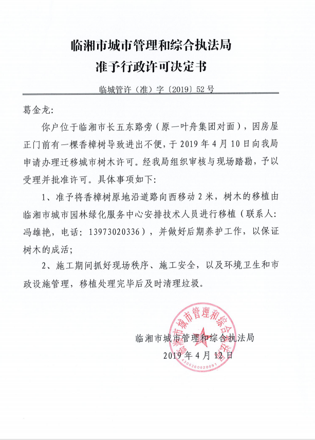 葛金龙私宅办理迁移城市树木