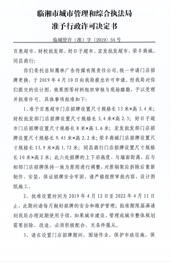 岳阳鹰林广告传媒有限责任公司办理门店招牌设置
