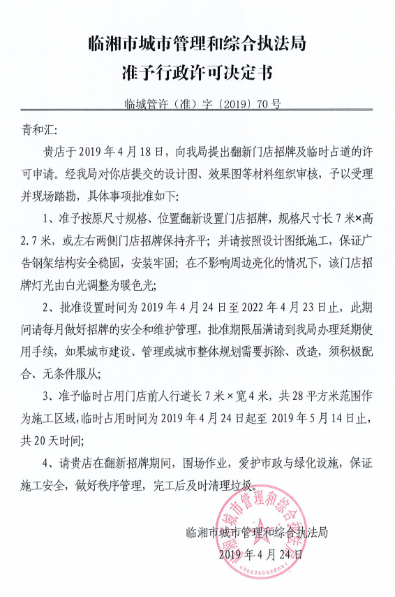 青和汇办理门店招牌设置、临时占用城市道路