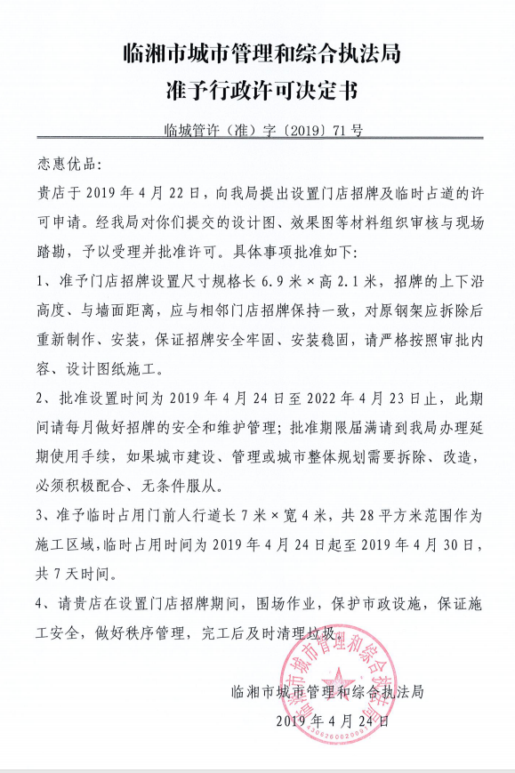 恋惠优品办理门店招牌设置、临时占用城市道路