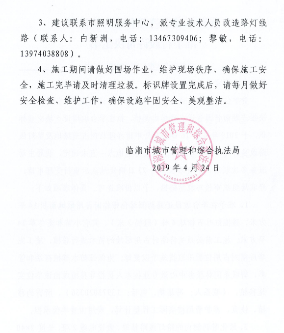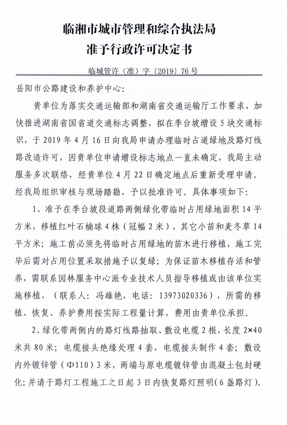 岳阳市公路建设和养护中心办理临时开挖城市绿地、迁移城市照明线路