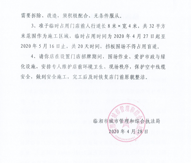 妈咪宝贝办理门店招牌设置、临时占用城市道路许可