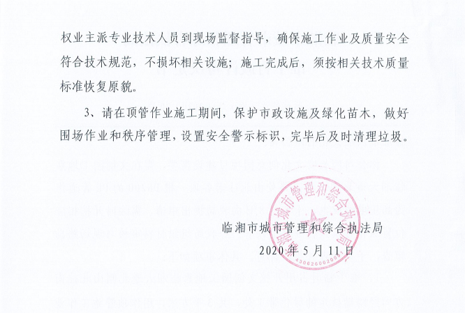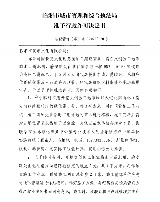 临湘市汉湘文化有限公司办理临时挖掘城市道路许可