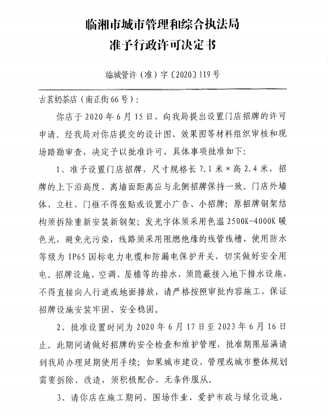 古茗奶茶店办理门店招牌设置许可