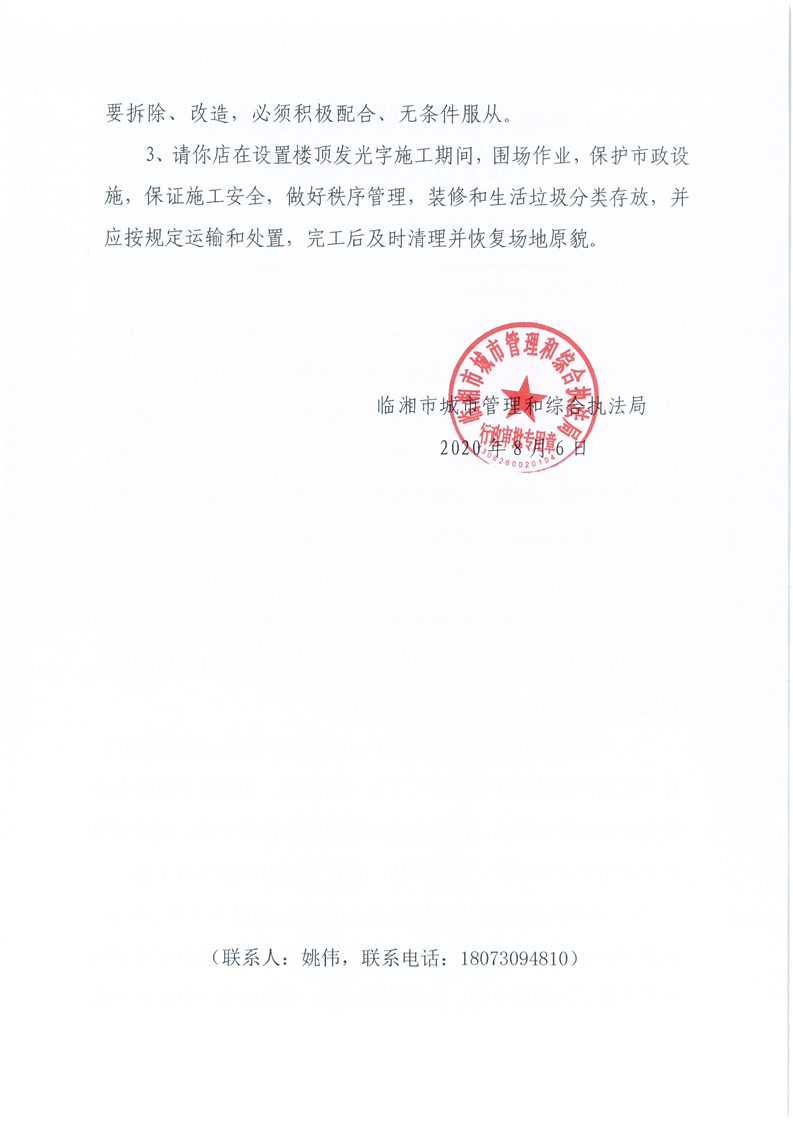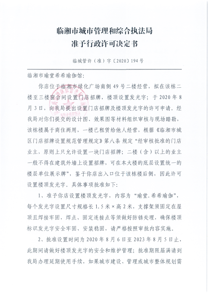 临湘市瑜堂希希瑜伽馆办理楼宇发光字设置许可