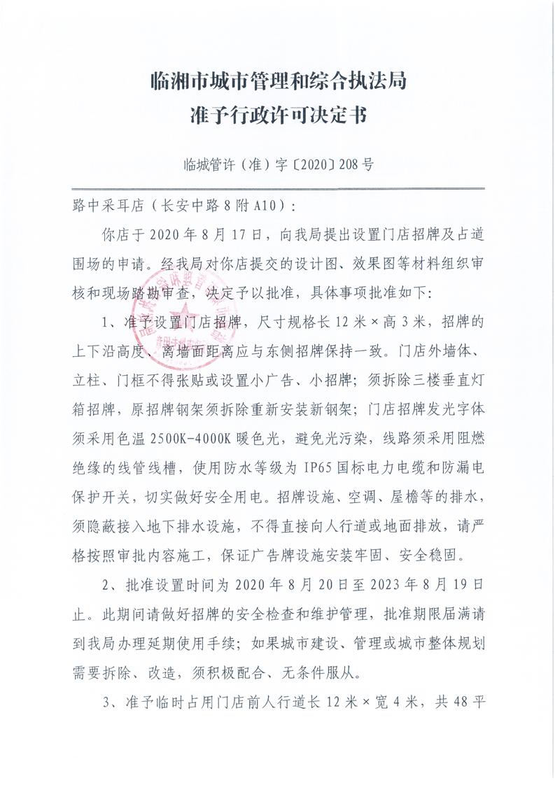 路中采耳店办理门店招牌设置、临时占用城市道路许可