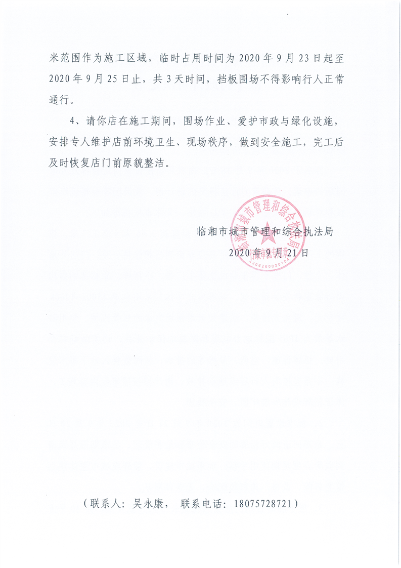 临湘市芬芬小吃店办理门店招牌设置、临时占用城市道路许可