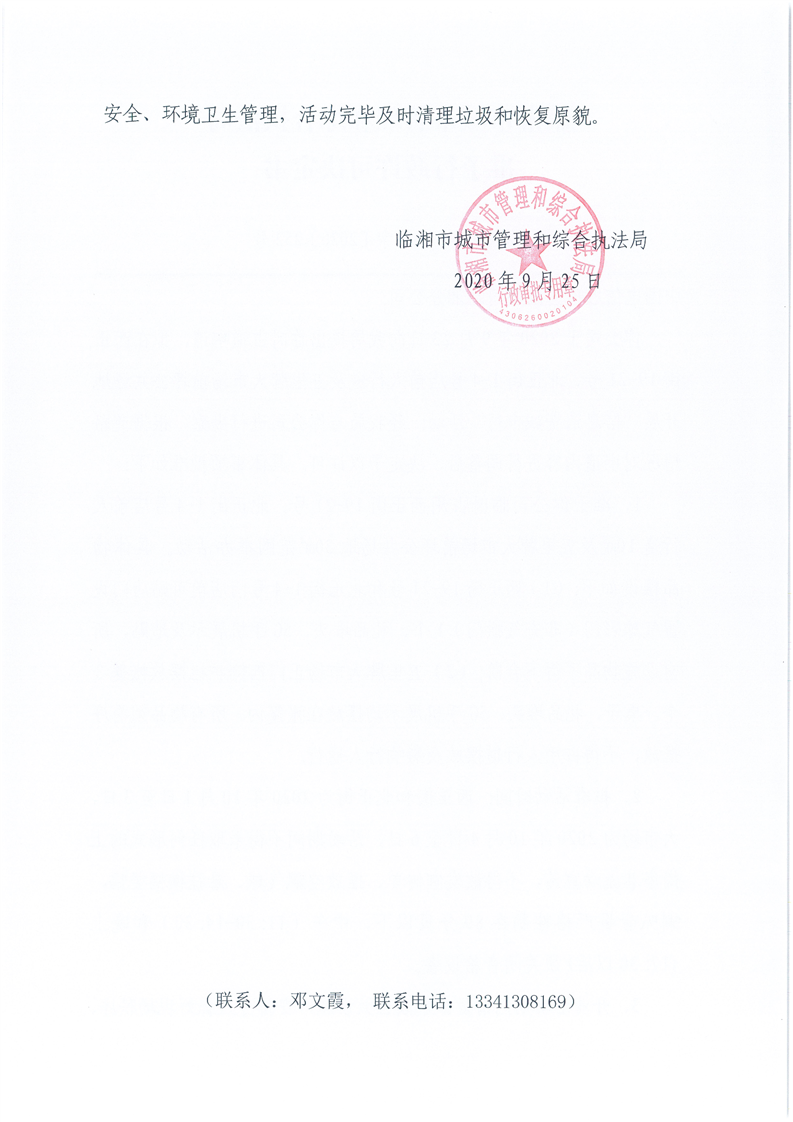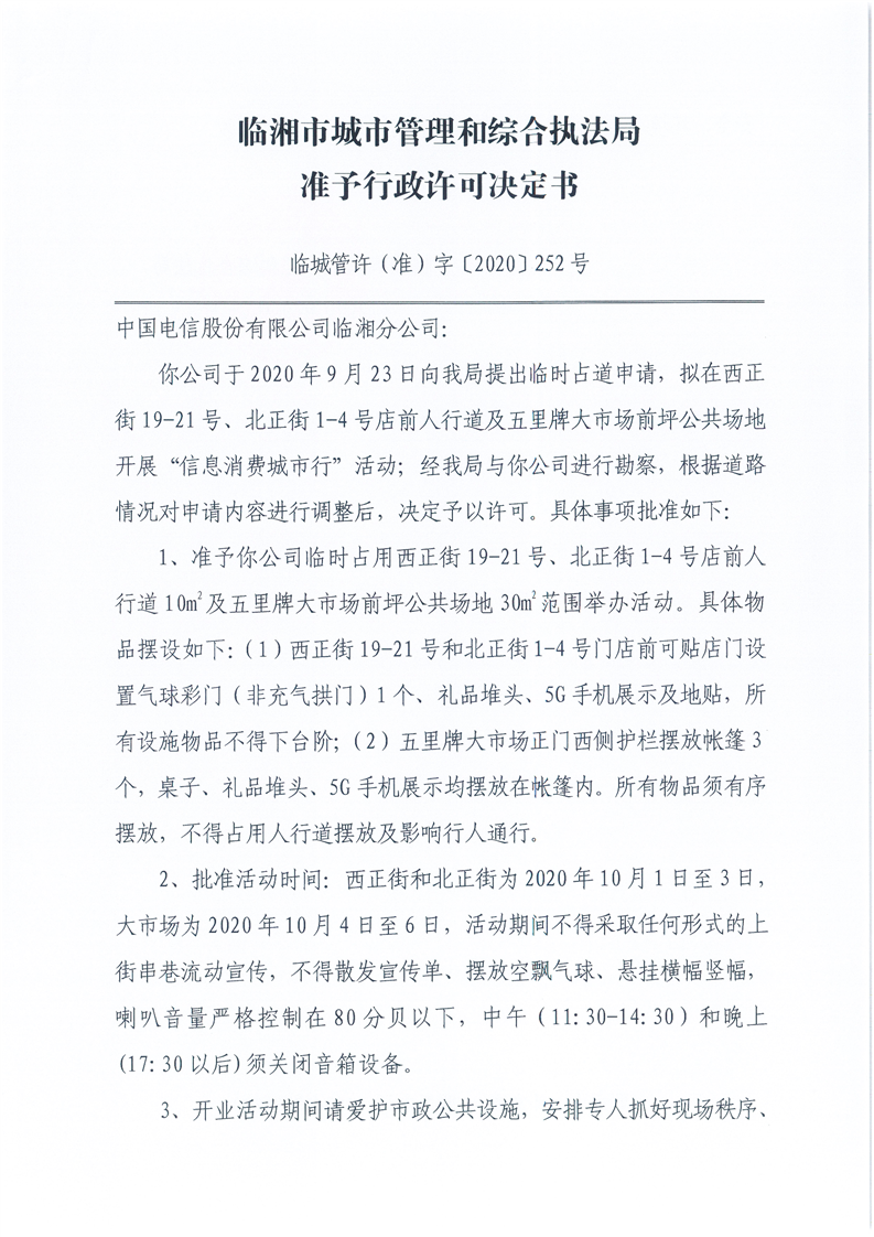 中国电信股份有限公司临湘分公司办理临时占用街道两侧和公共场地许可
