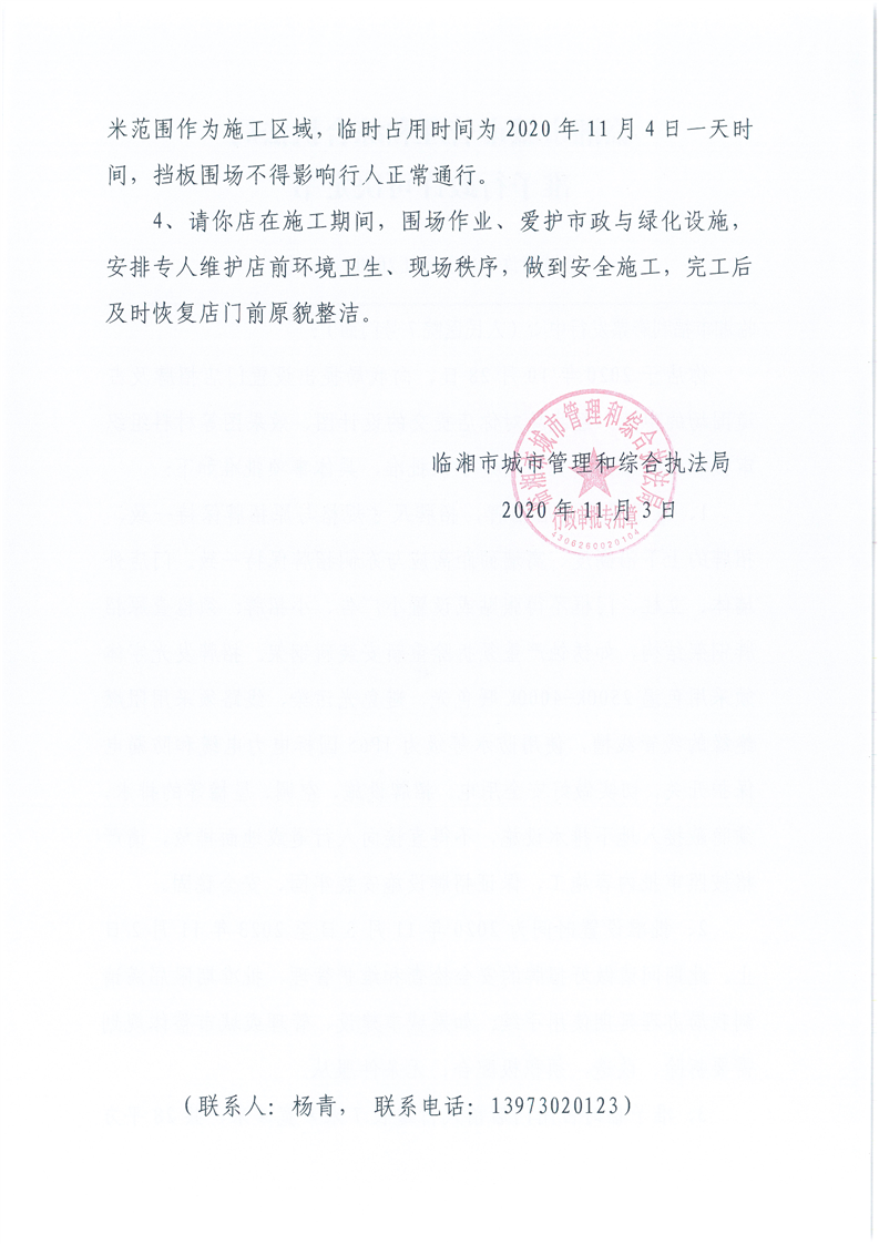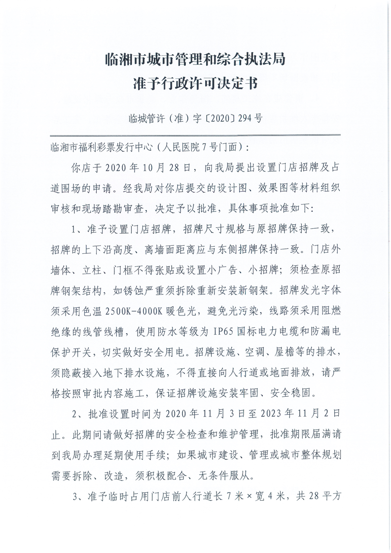 临湘市福利彩票发行中心办理门店招牌设置、临时占用城市道路许可
