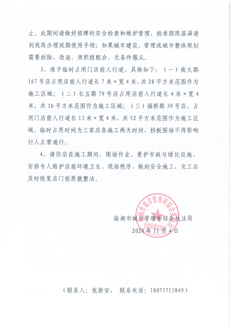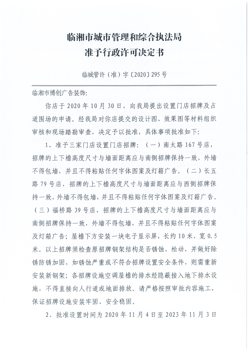 临湘市博创广告装饰办理门店招牌设置、临时占用城市道路许可