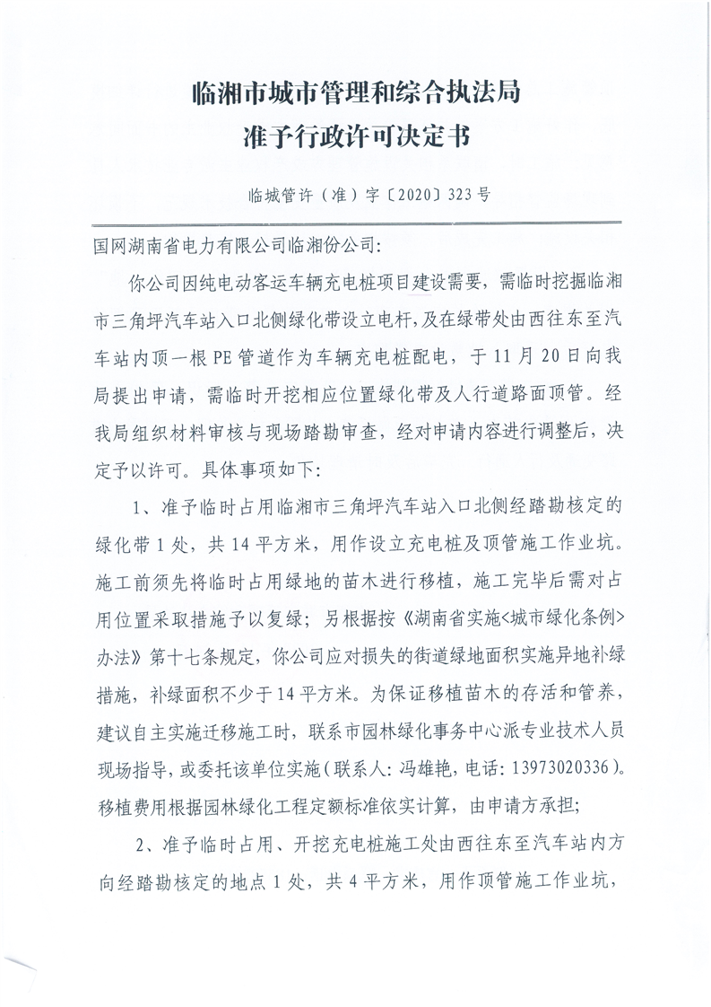 国网湖南省电力有限公司临湘分公司办理迁移城市树木、临时占用挖掘城市道路许可
