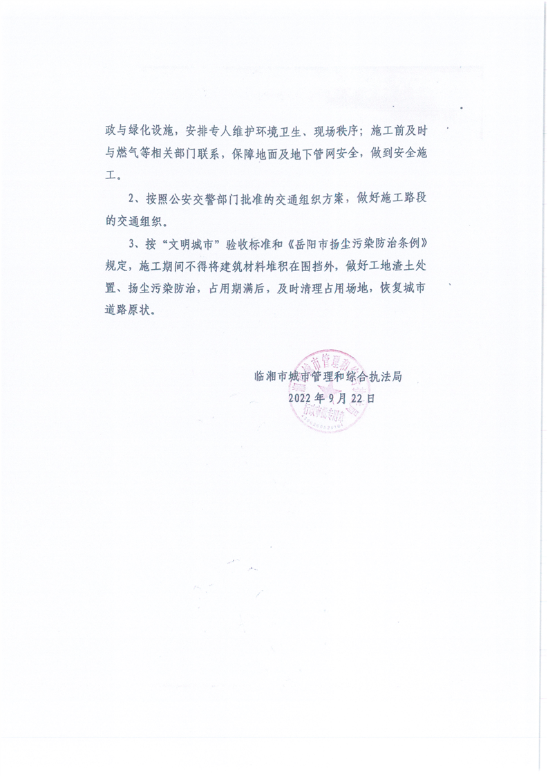 临湘市蔡承飞早餐店办理临时性占道施工许可