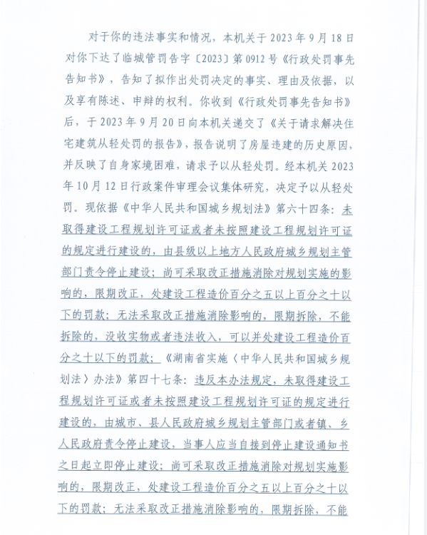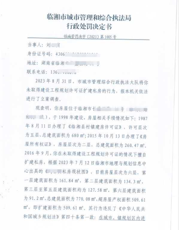 对刘某未取得建设工程规划许可证擅自扩建私房的行政处罚