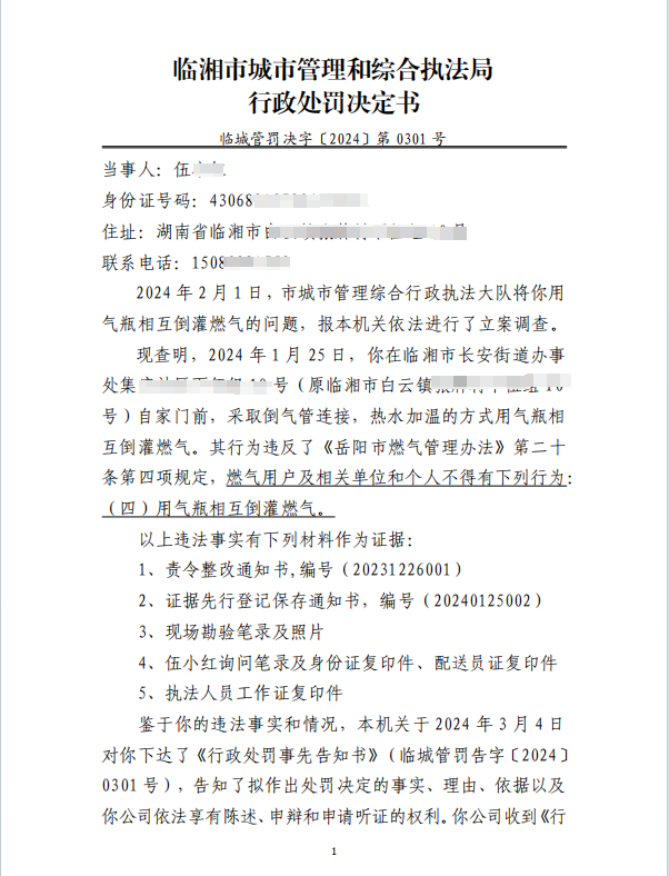 对伍某倒灌燃气的行政处罚