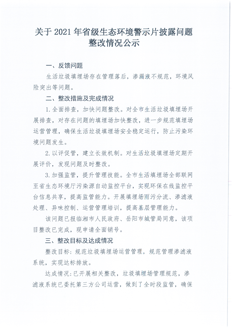 关于2021年省级生态环境警示片披露问题整改情况公示