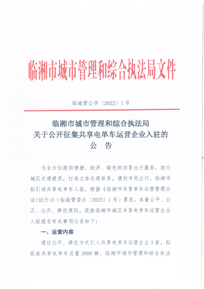 关于公开征集共享电单车运营企业入驻的公告