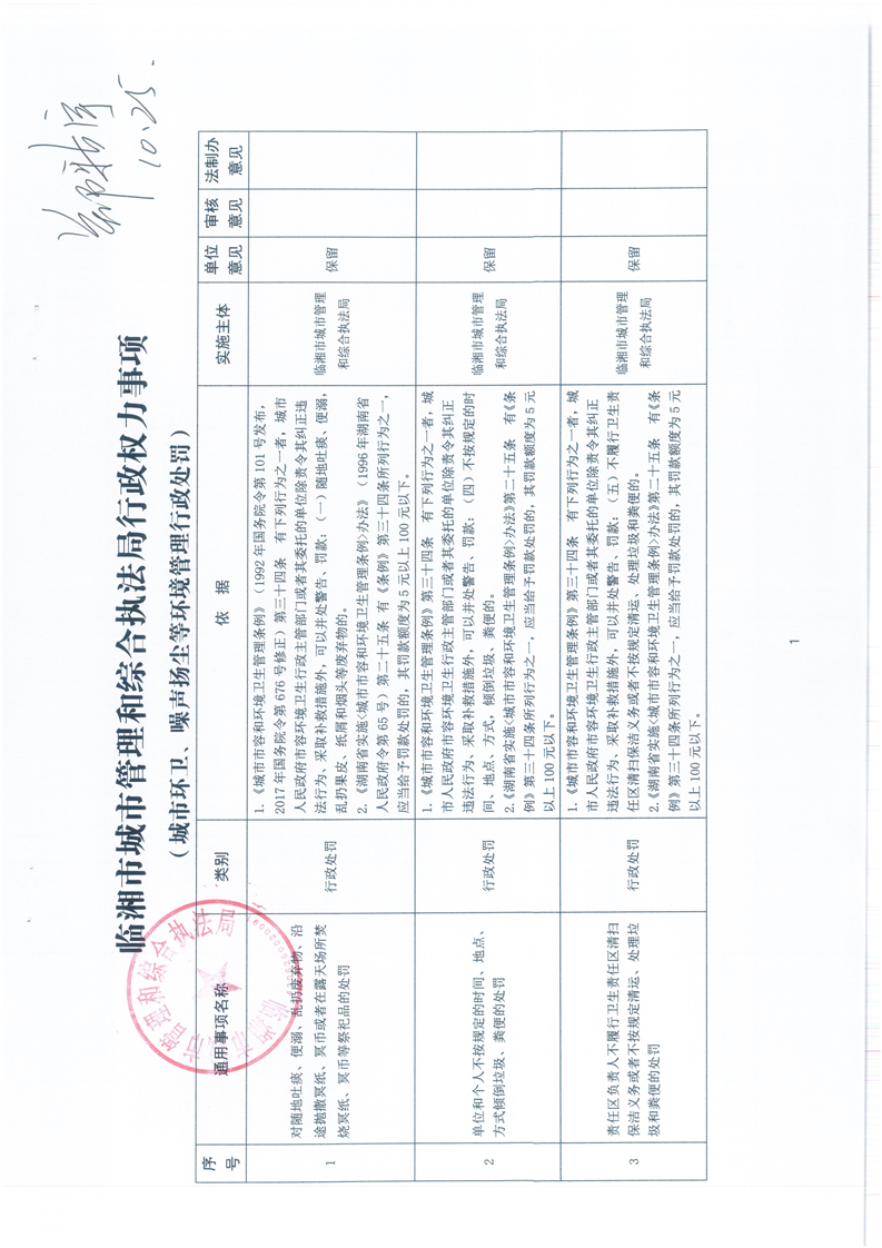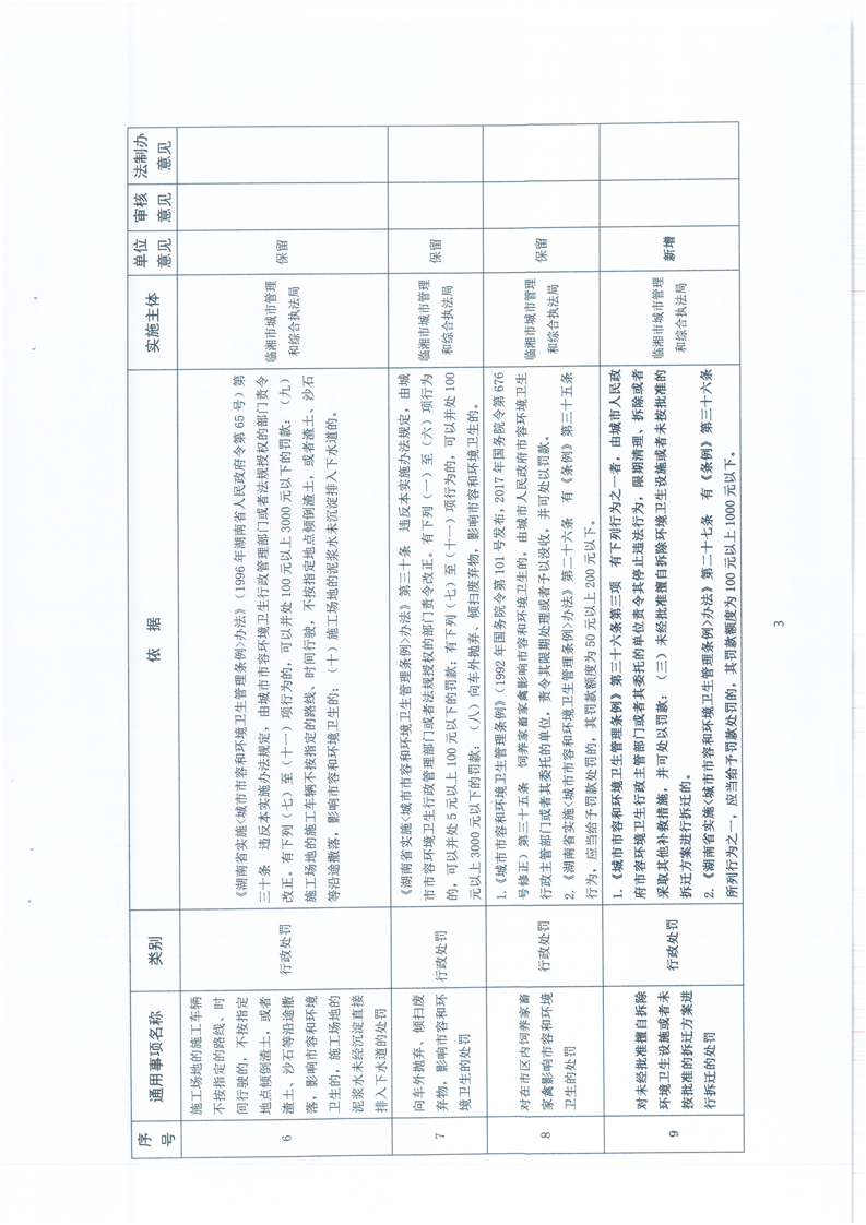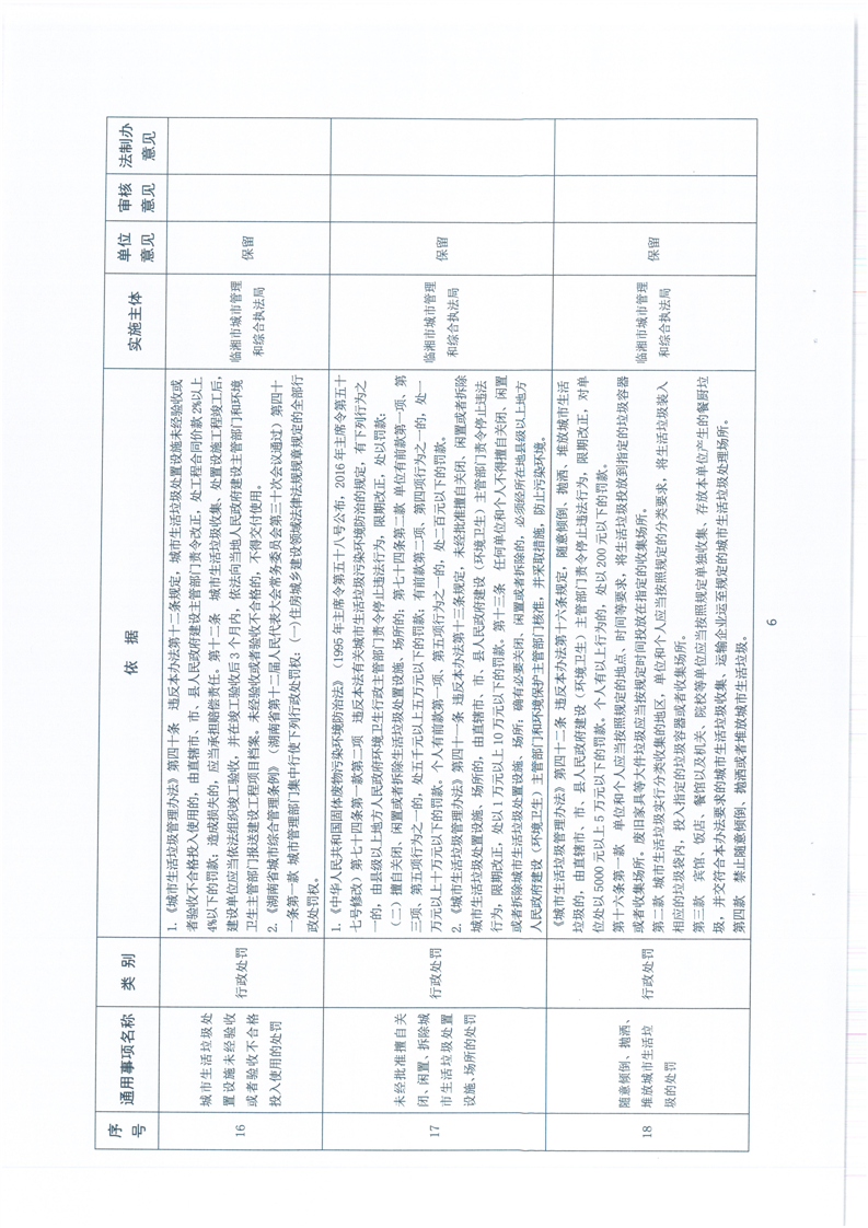 临湘市城市管理行政执法局行政权力事项—行政处罚—环境卫生类