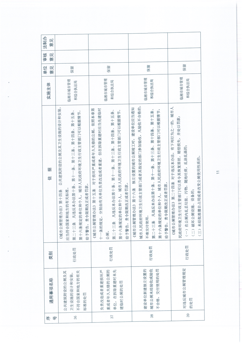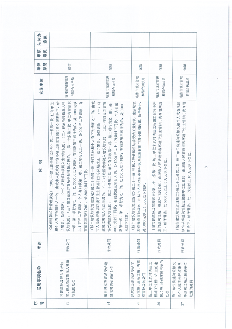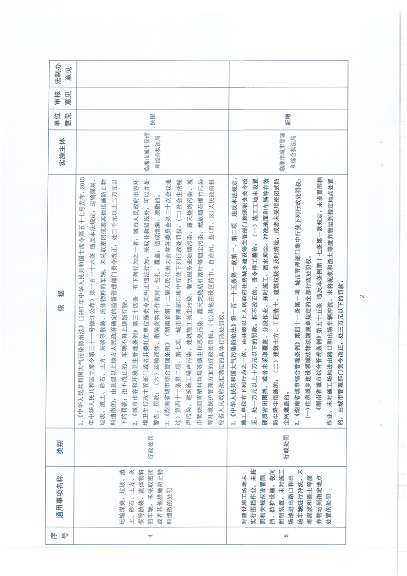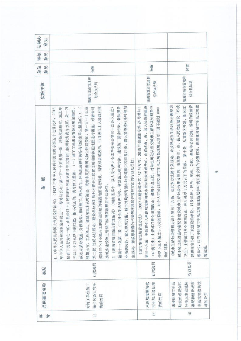 临湘市城市管理行政执法局行政权力事项—行政处罚—环境卫生类