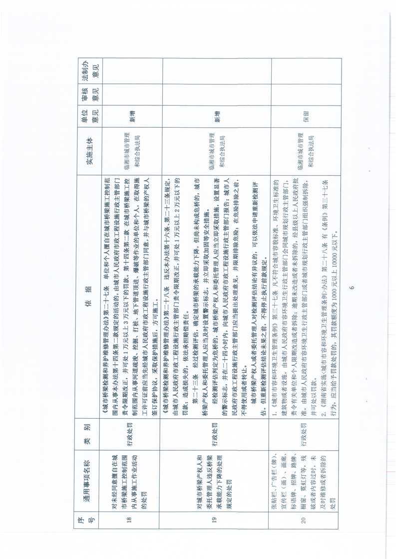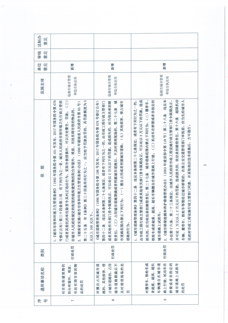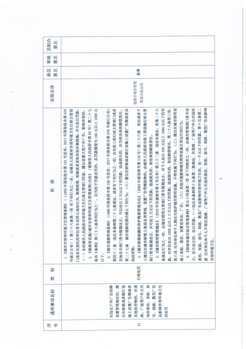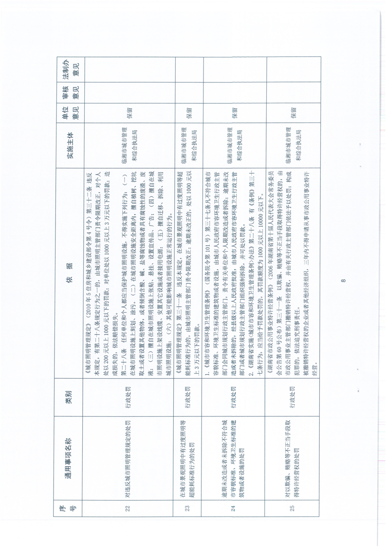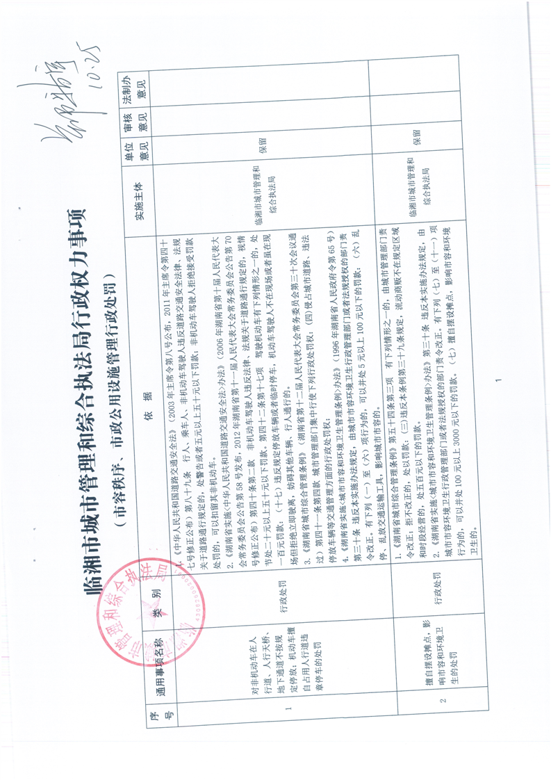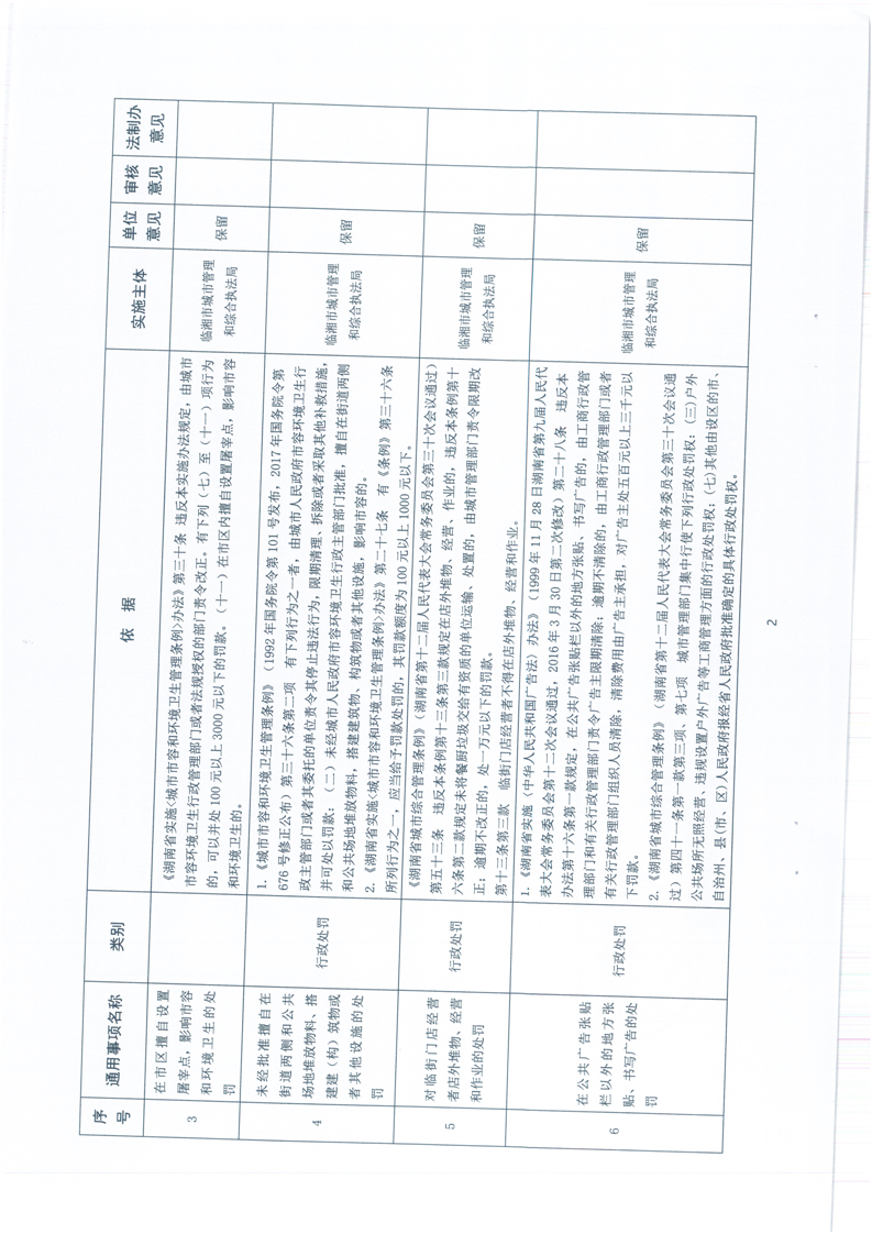 临湘市城市管理行政执法局行政权力事项—行政处罚—市容秩序、市政公用设施类