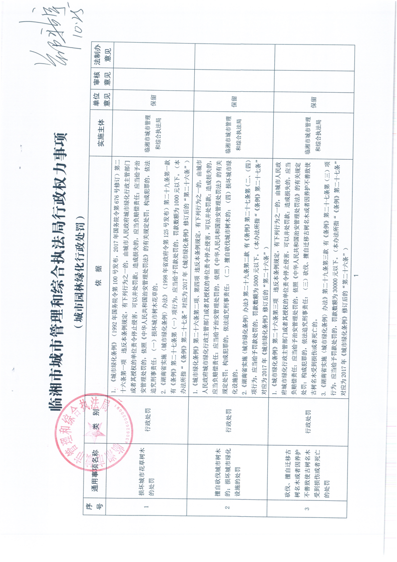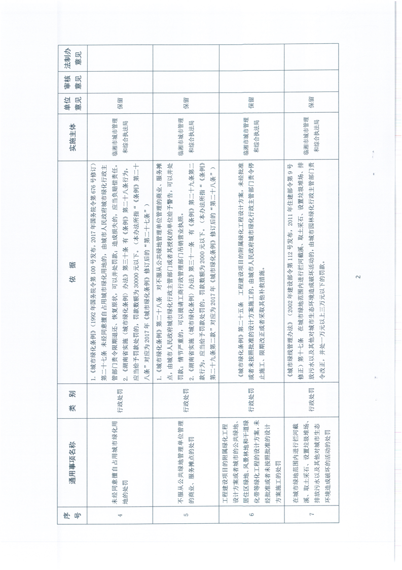 临湘市城市管理行政执法局行政权力事项—行政处罚—园林绿化类