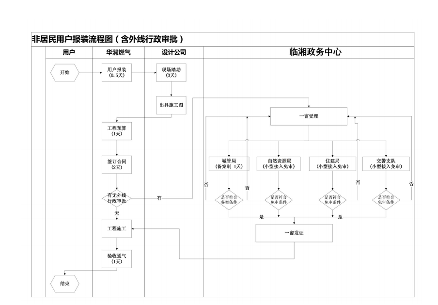 非居民用户报装流程图(含外线行政审批)