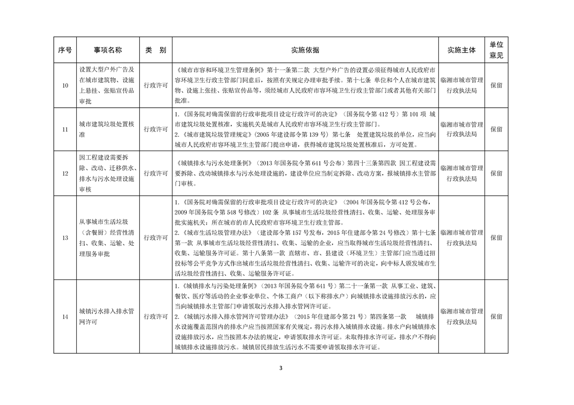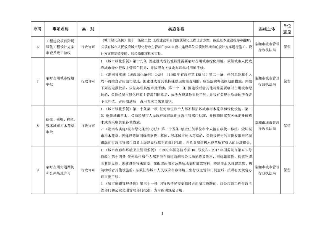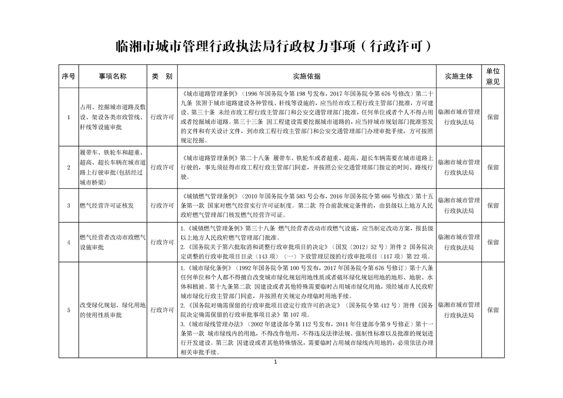 临湘市城市管理行政执法局行政权力事项—行政许可
