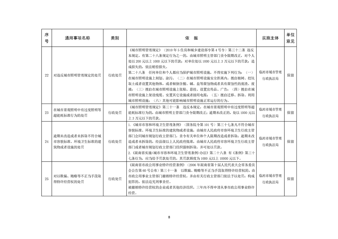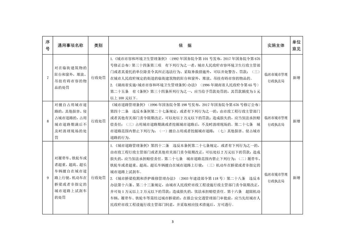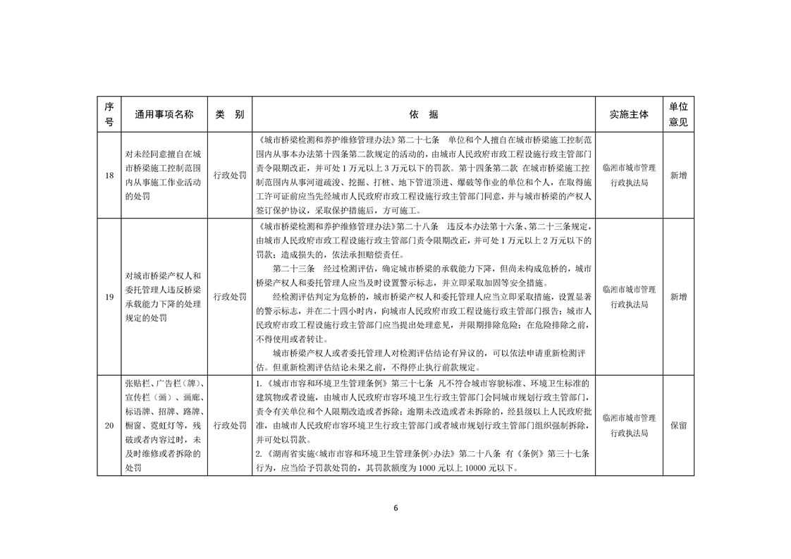 临湘市城市管理行政执法局行政权力事项—行政处罚(市容秩序、市政公用设施类)