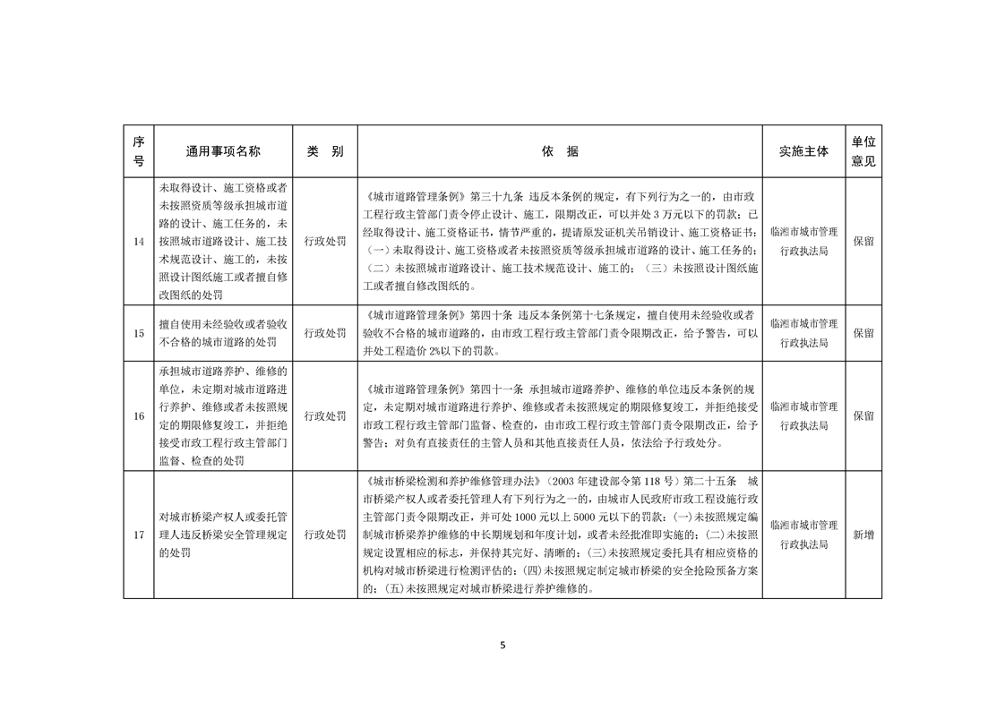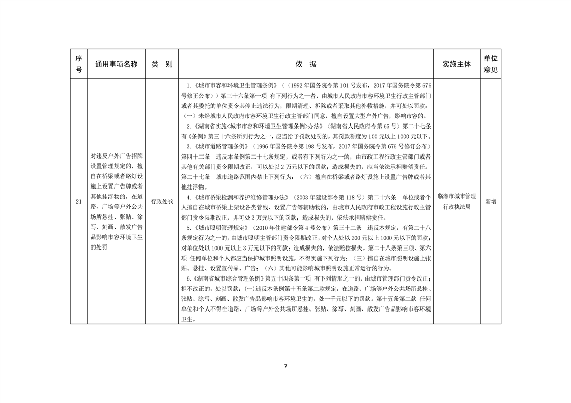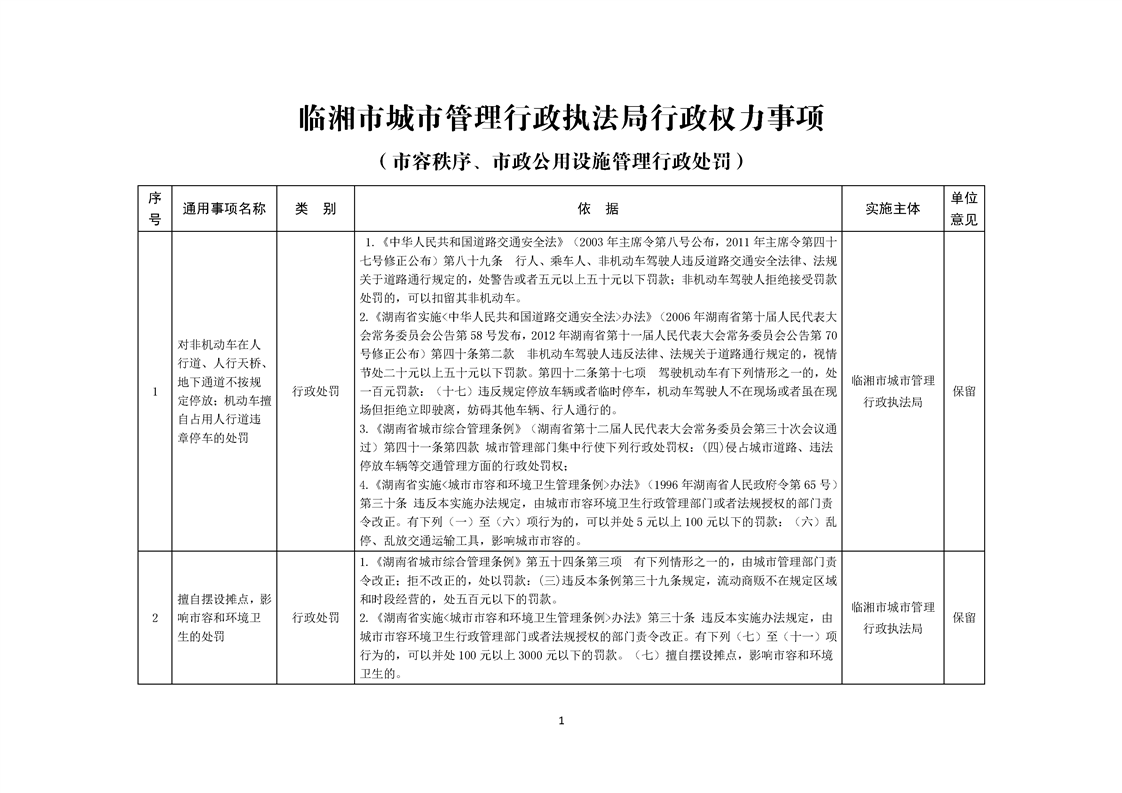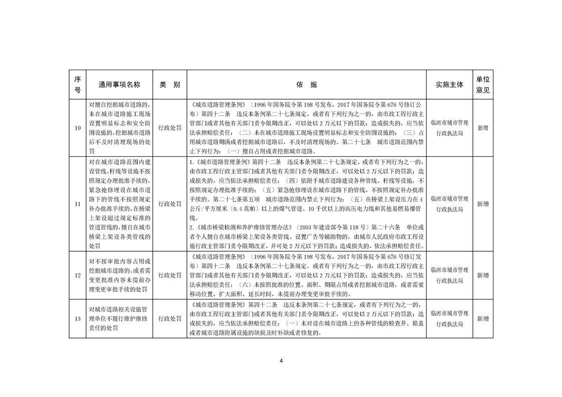 临湘市城市管理行政执法局行政权力事项—行政处罚(市容秩序、市政公用设施类)