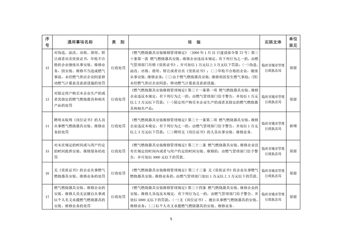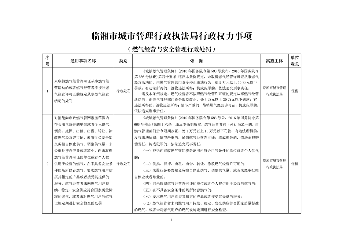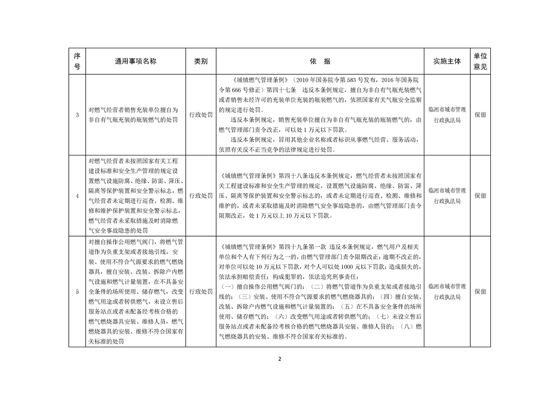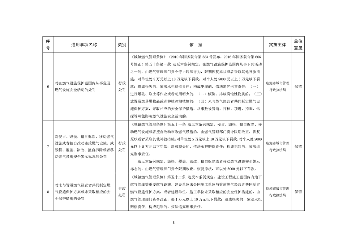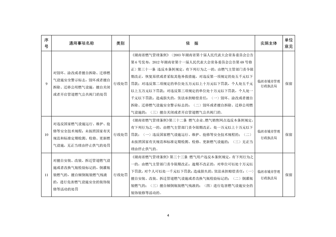 临湘市城市管理行政执法局行政权力事项—行政处罚(燃气类)