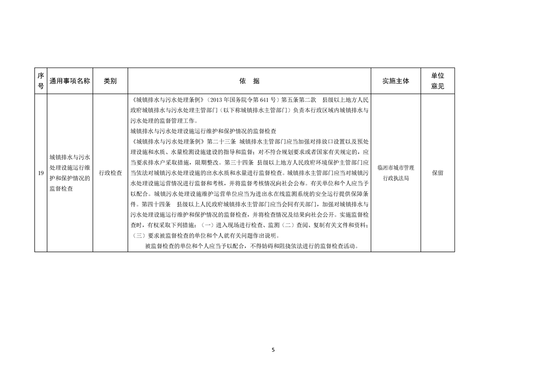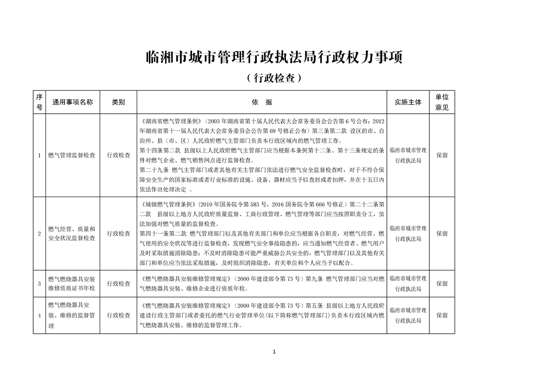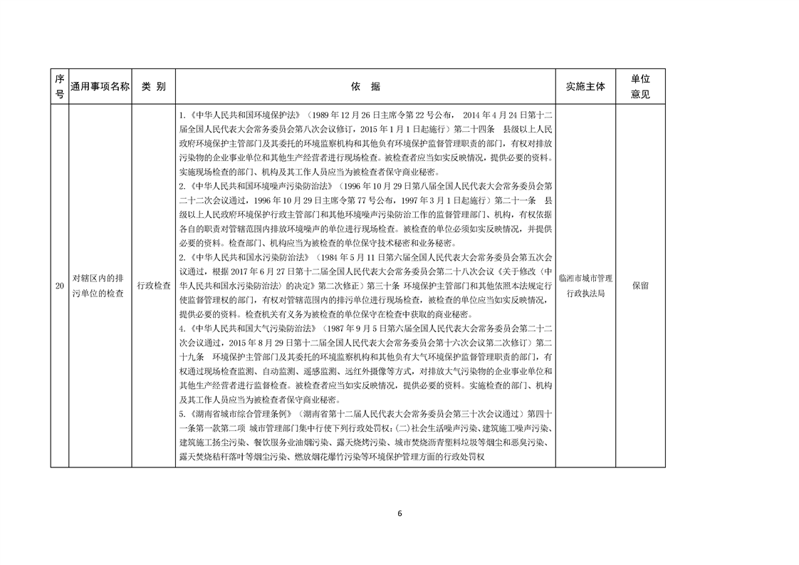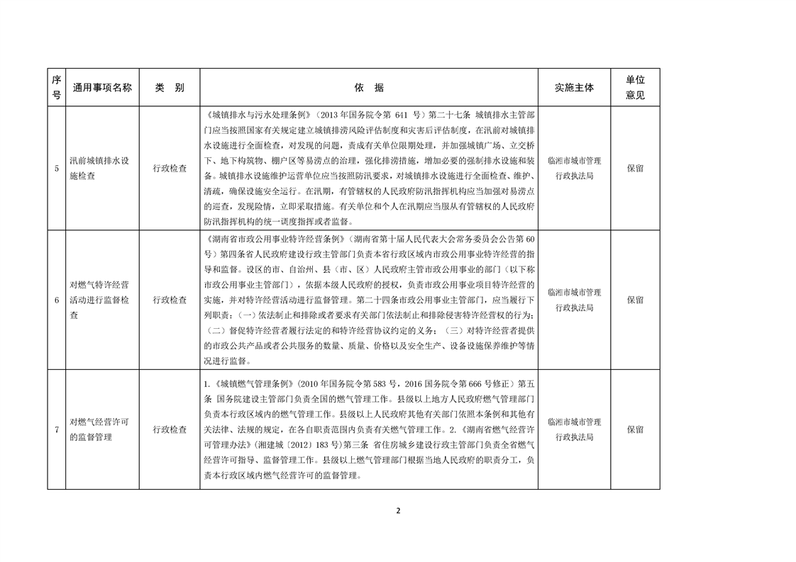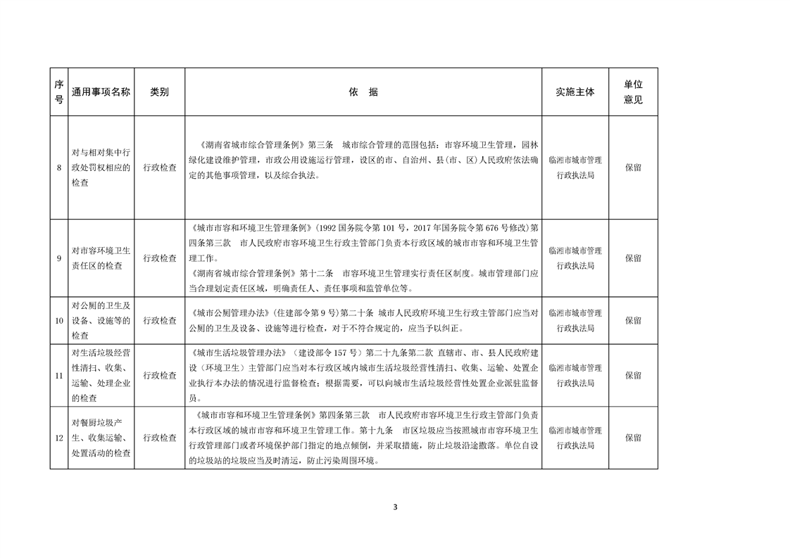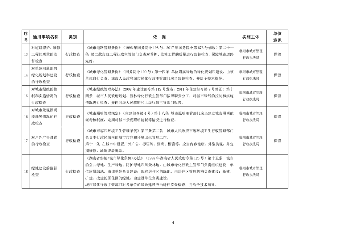 临湘市城市管理行政执法局行政权力事项—行政检查