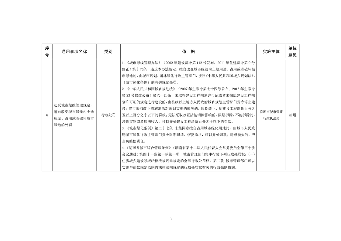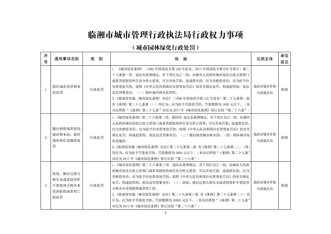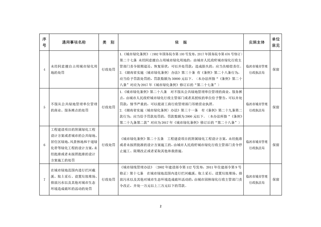 临湘市城市管理行政执法局行政权力事项—行政处罚(园林绿化类)