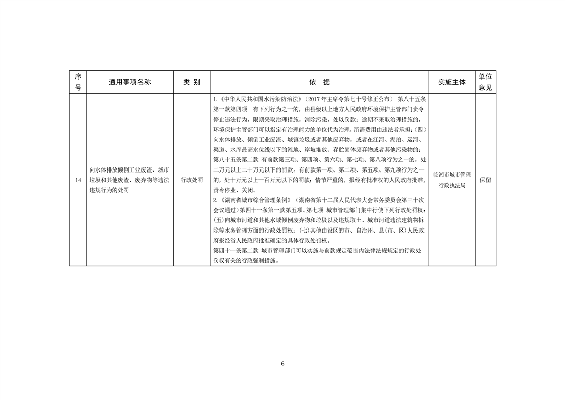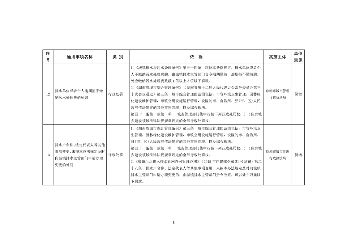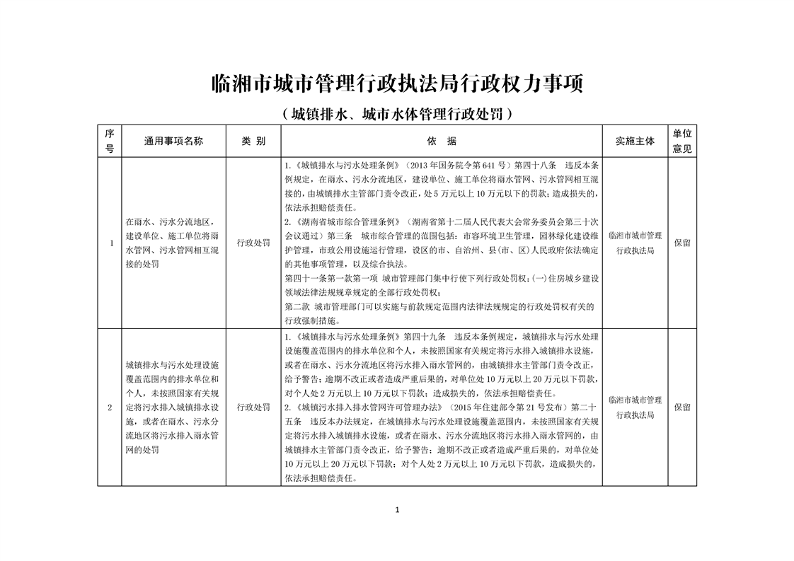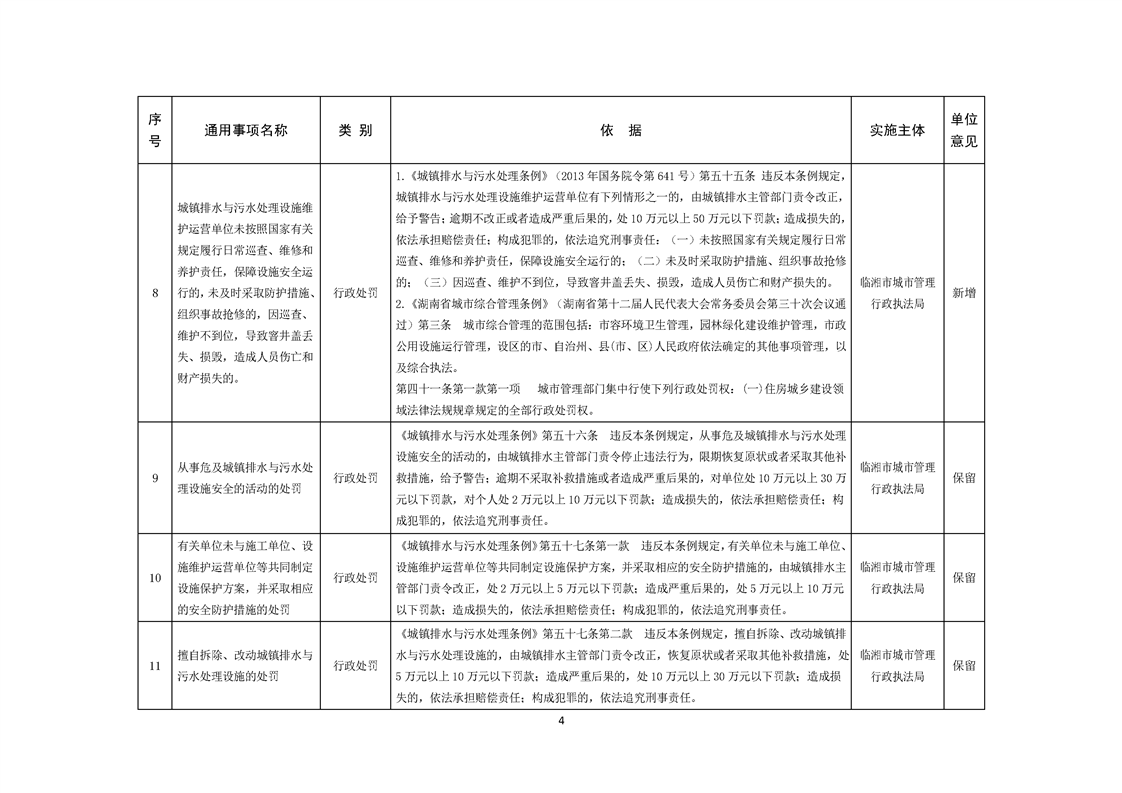 临湘市城市管理行政执法局行政权力事项—行政处罚(城镇排水、城市水体类)